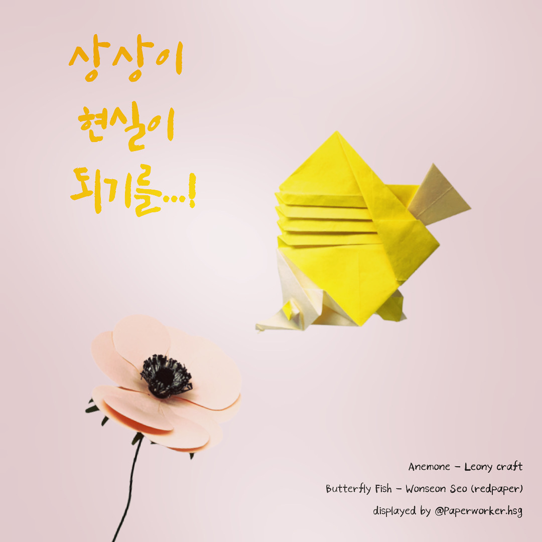 요즘 배우고 있는 리오니님의 페이퍼 플라워와 서원선 선생님의 버터플라이 피쉬를 만들어서 함께 연출해 보았습니다.