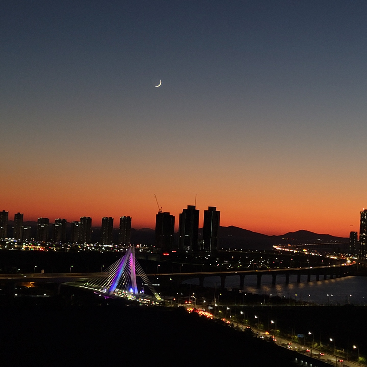 예쁜 노을과 하늘 위에 자리한 초승달까지, 정말 마음이 뭉클해지는 장면이었어요.