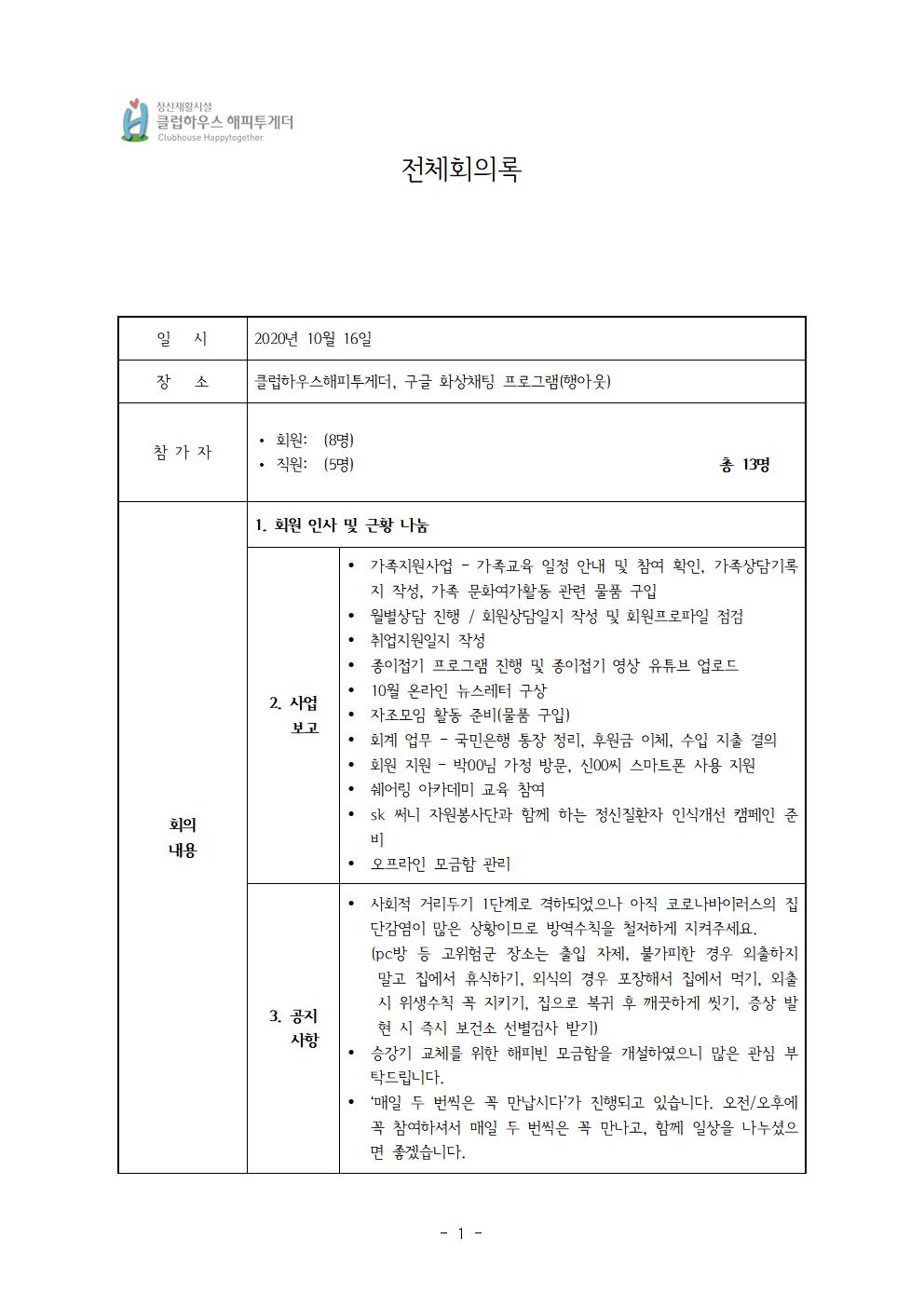 2020.10.16 전체회의록 내용입니다~