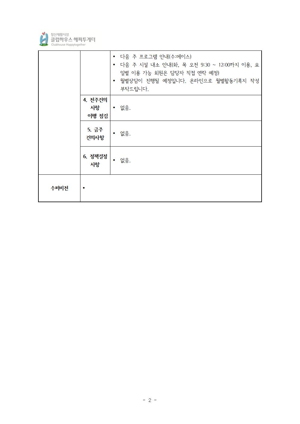 부득이하게 전체회의에 참여하지 못하신 분들은 전체회의록을 참고해 주시면 좋을 것 같습니다 :)