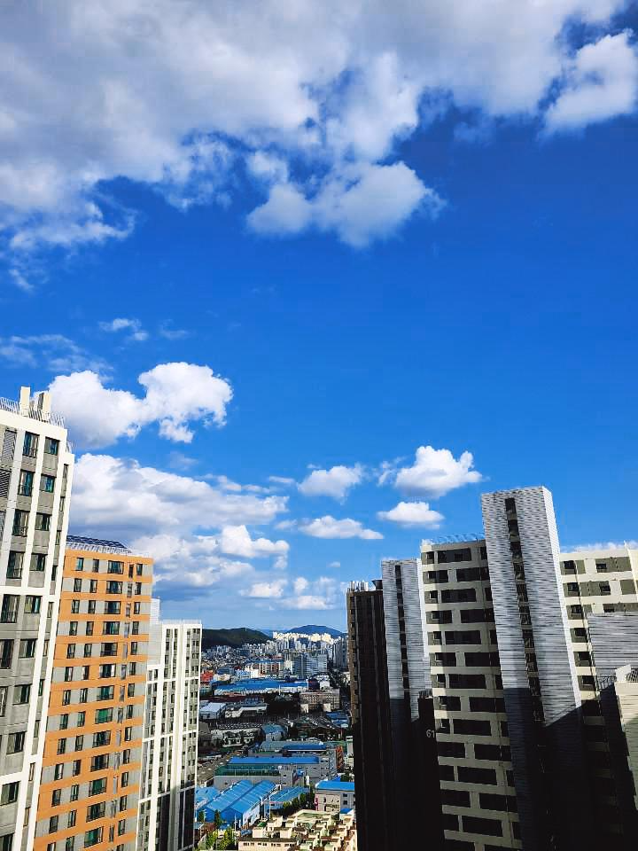아파트가 하늘을 조금 가렸지만 그래도 하늘의 모습이 아름답습니다.