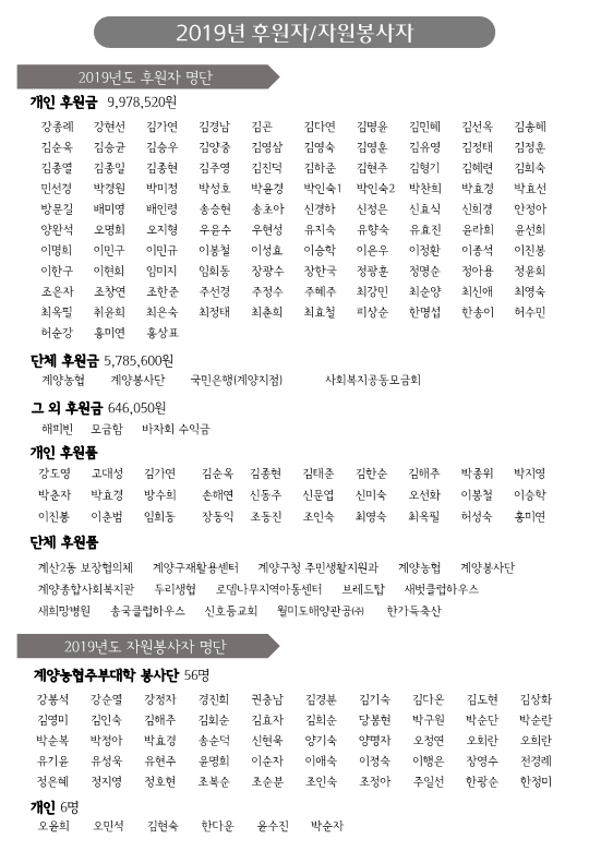 2020년 소식지 1호를 후원자, 자원봉사, 회원(가족), 유관 기관 등에 발송하였습니다.