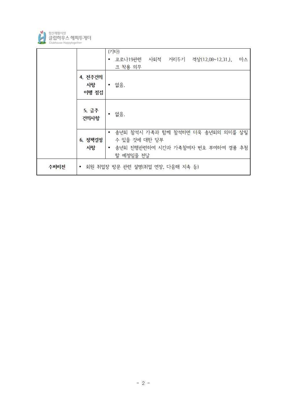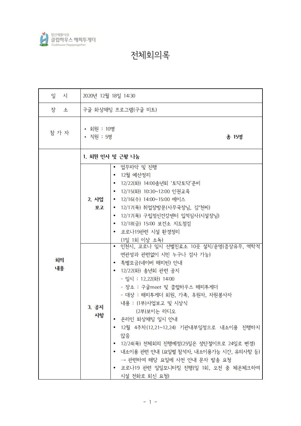 부득이하게 전체회의에 참여하지 못하신 분들께서는 전체회의록 참고해주시길 바랍니다.