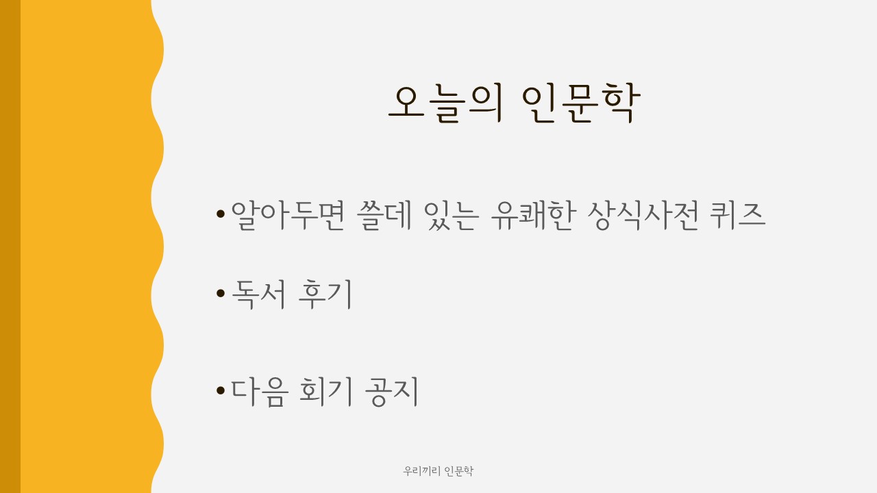오늘도 어김없이 찾아온 우리끼리하는 인문학!