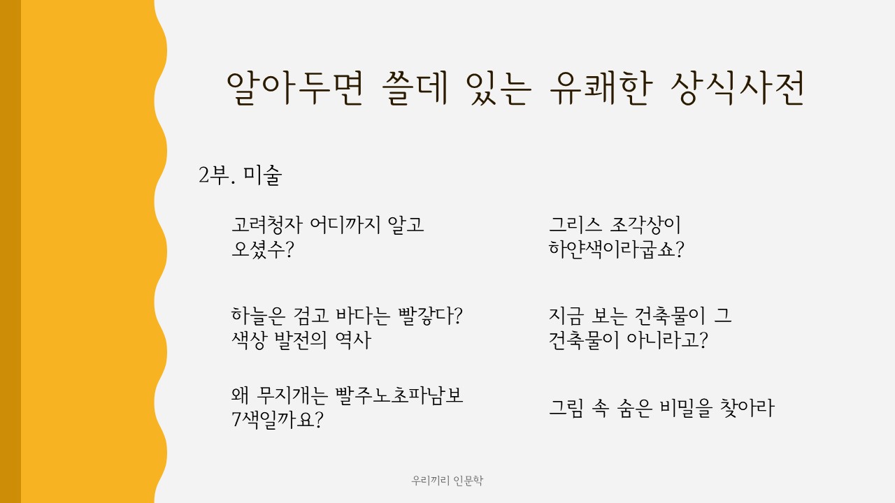 *다음 온라인 프로그램 '우리끼리 인문학'은 3월 8일 월요일 오후 2시에 진행됩니다.*