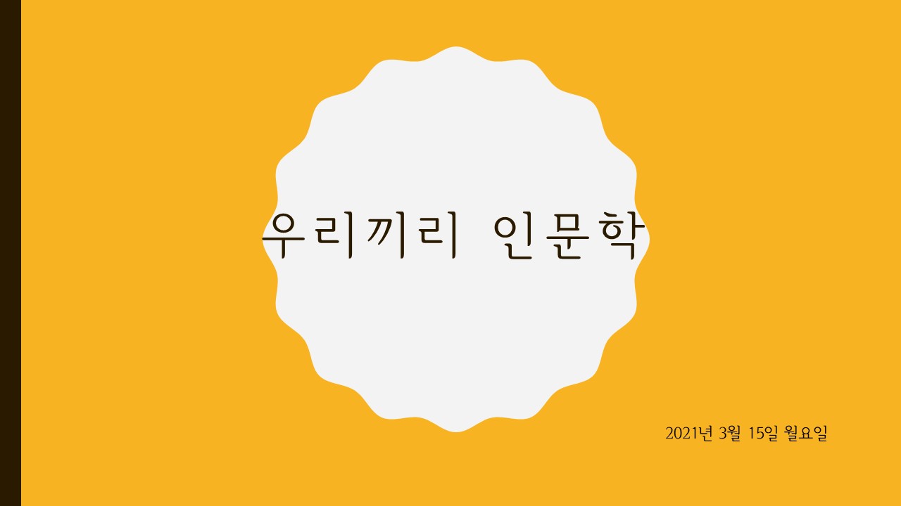 이번 우리끼리 인문학은 3월 15일 월요일에 진행됩니다~!