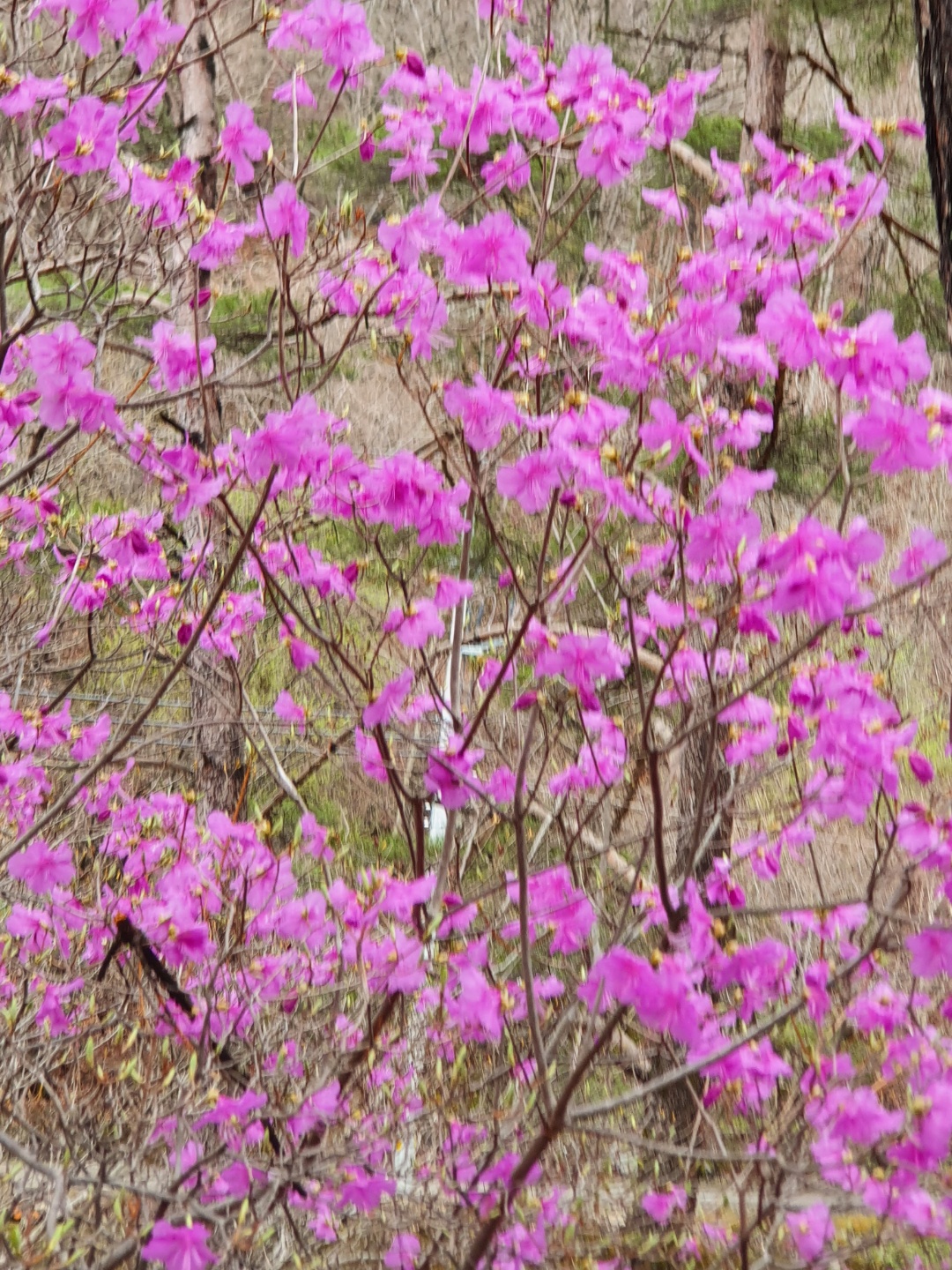 숙소앞에 진달래가 피었는데 진달래는 처음봐서 신기했다.