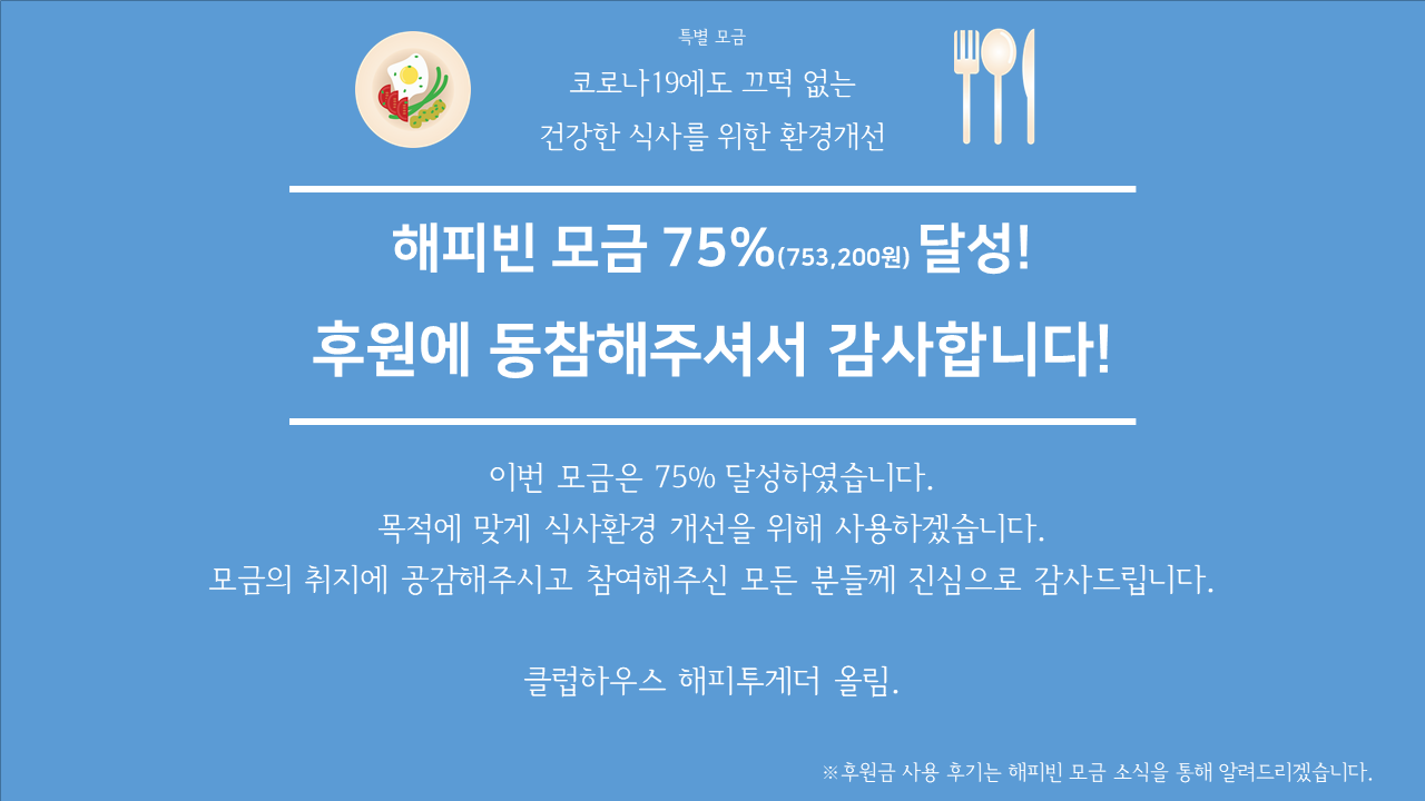 모금액은 목적에 맞게 식사환경 개선을 위해 사용하겠습니다.