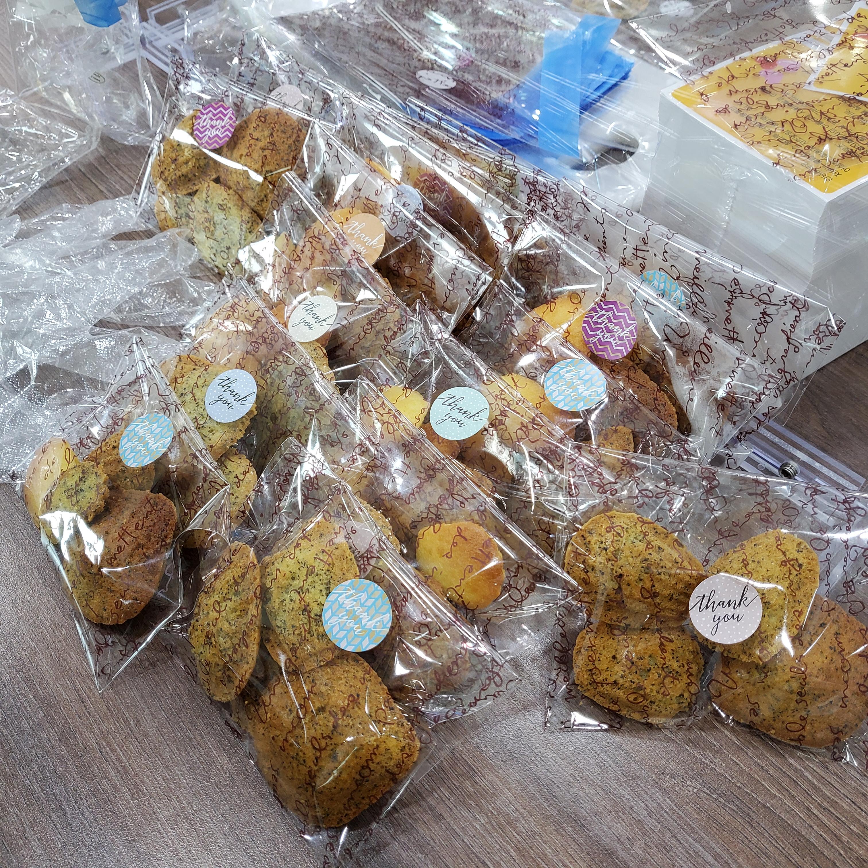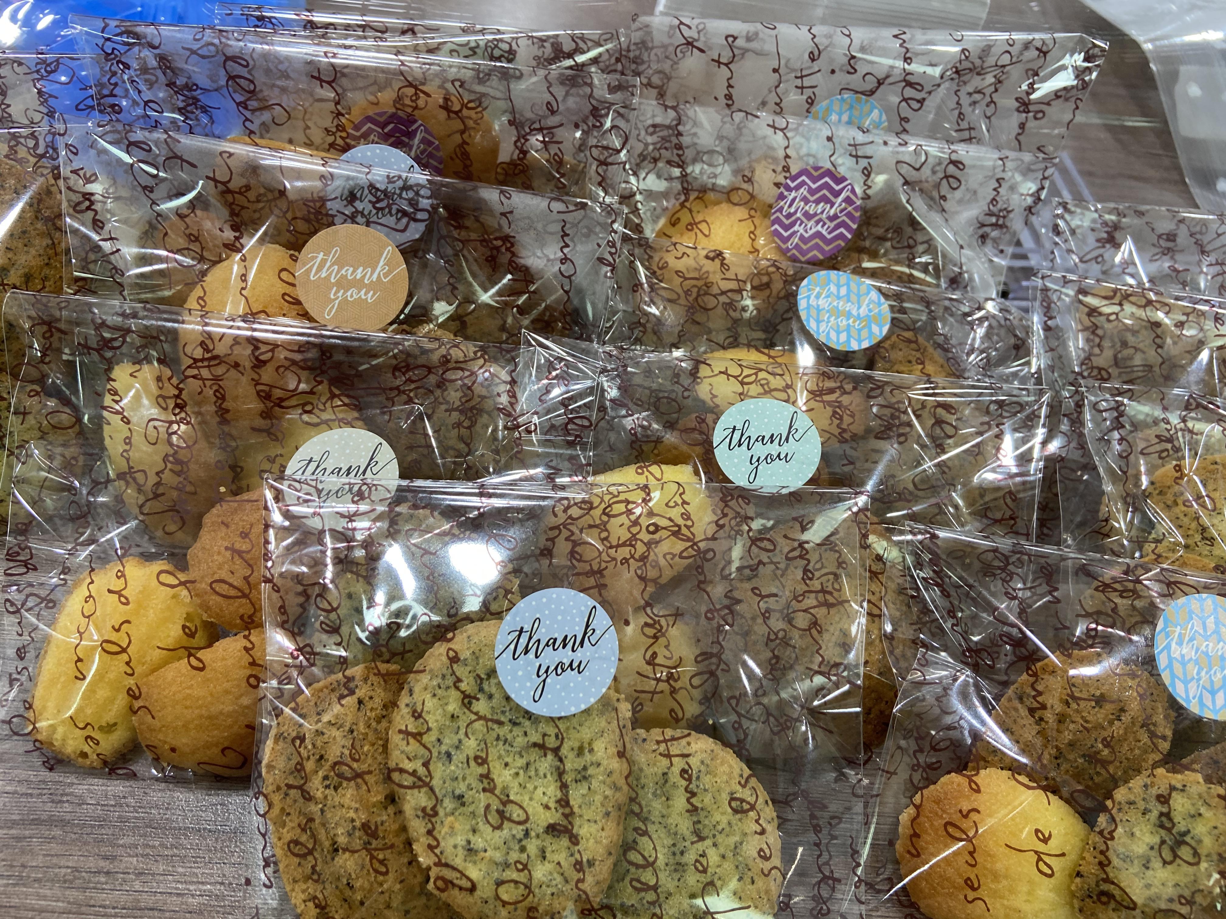 그리고 다 완성된 마들렌을 포장지에 예쁘게 담아 포장했습니다.
