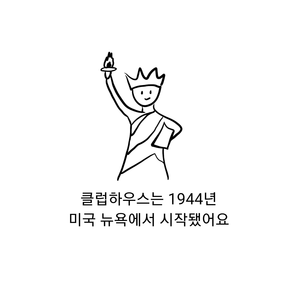 클럽하우스는 1944년 미국 뉴욕에서 시작됐어요. 10명의 정신장애인이 모여 구성한 자조모임 WANA(We Are Not Alone)를 전신으로, 환자가 아닌 삶의 주체로 살아가고 회복하기 위해 연대하여 함께 일하기 시작했어요.