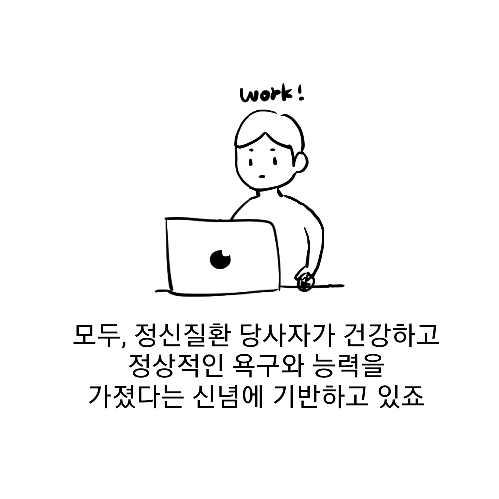 처음에는 정신질환 당사자만 클럽하우스의 멤버였지만, 나중에는 간호사, 사회복지사 등이 함께 모여 장점, 강점을 중심으로 회복 활동을 이어갔대요.