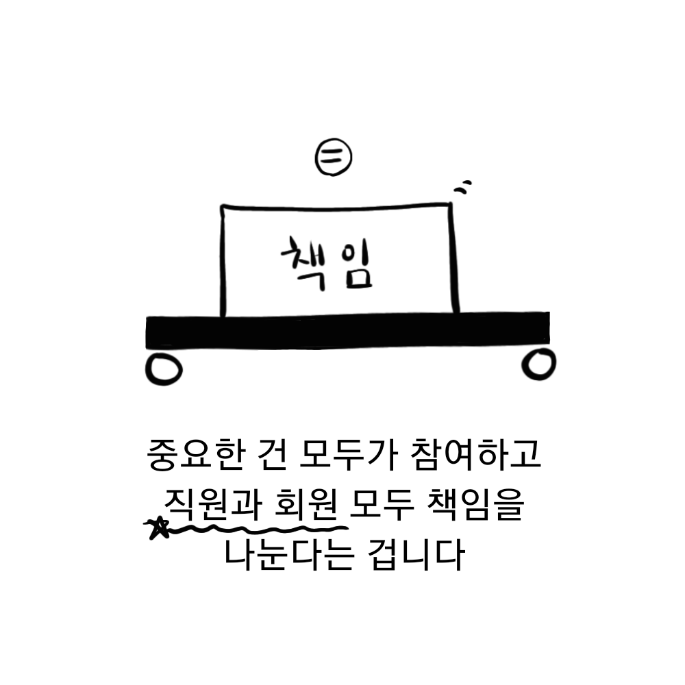 클럽하우스의 관계는 이처럼 끈끈하고 유기적인데요. 중요한 건 모두가 참여하고 직원과 회원 모두 책임을 나눈다는 겁니다. 그렇기에 회의와 토론, 자발적인 참여가 중요하겠죠? 마치 퍼즐조각 같지 않나요? 직원, 회원, 누구 하나 배제되지 않고 제 역할을 하며 '클럽하우스'를 만드니까요!