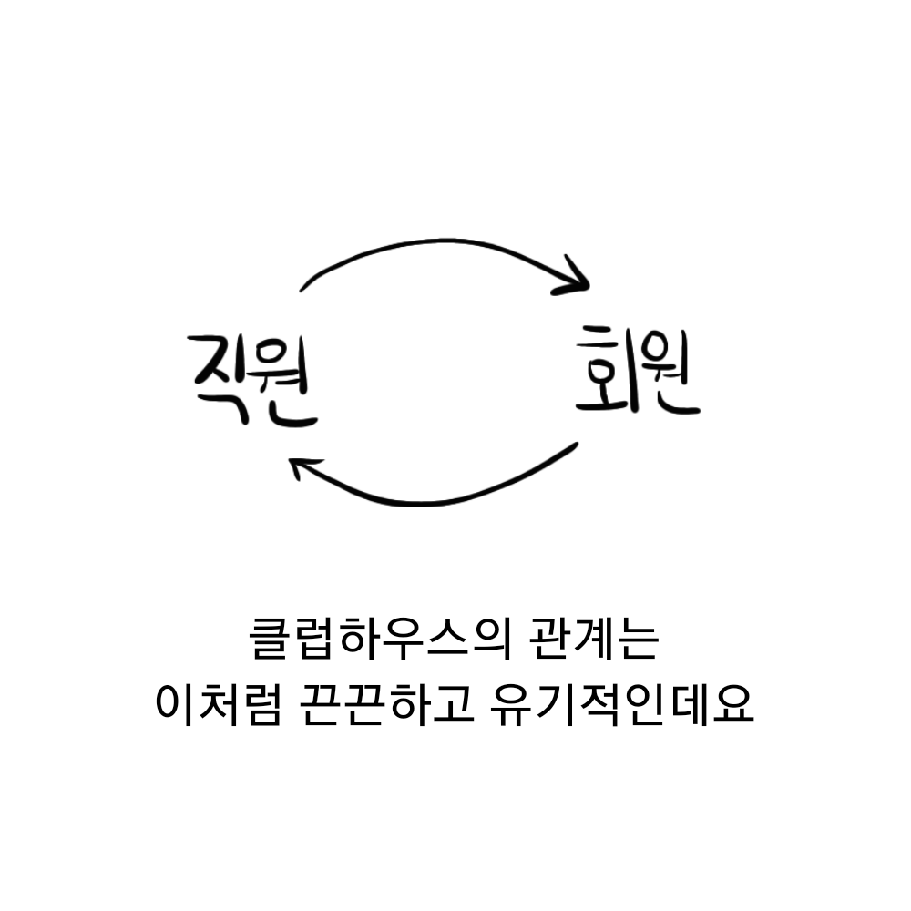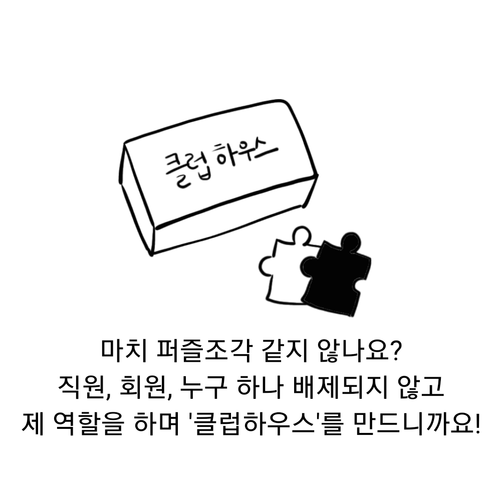 클럽하우스의 관계는 이처럼 끈끈하고 유기적인데요. 중요한 건 모두가 참여하고 직원과 회원 모두 책임을 나눈다는 겁니다. 그렇기에 회의와 토론, 자발적인 참여가 중요하겠죠? 마치 퍼즐조각 같지 않나요? 직원, 회원, 누구 하나 배제되지 않고 제 역할을 하며 '클럽하우스'를 만드니까요!