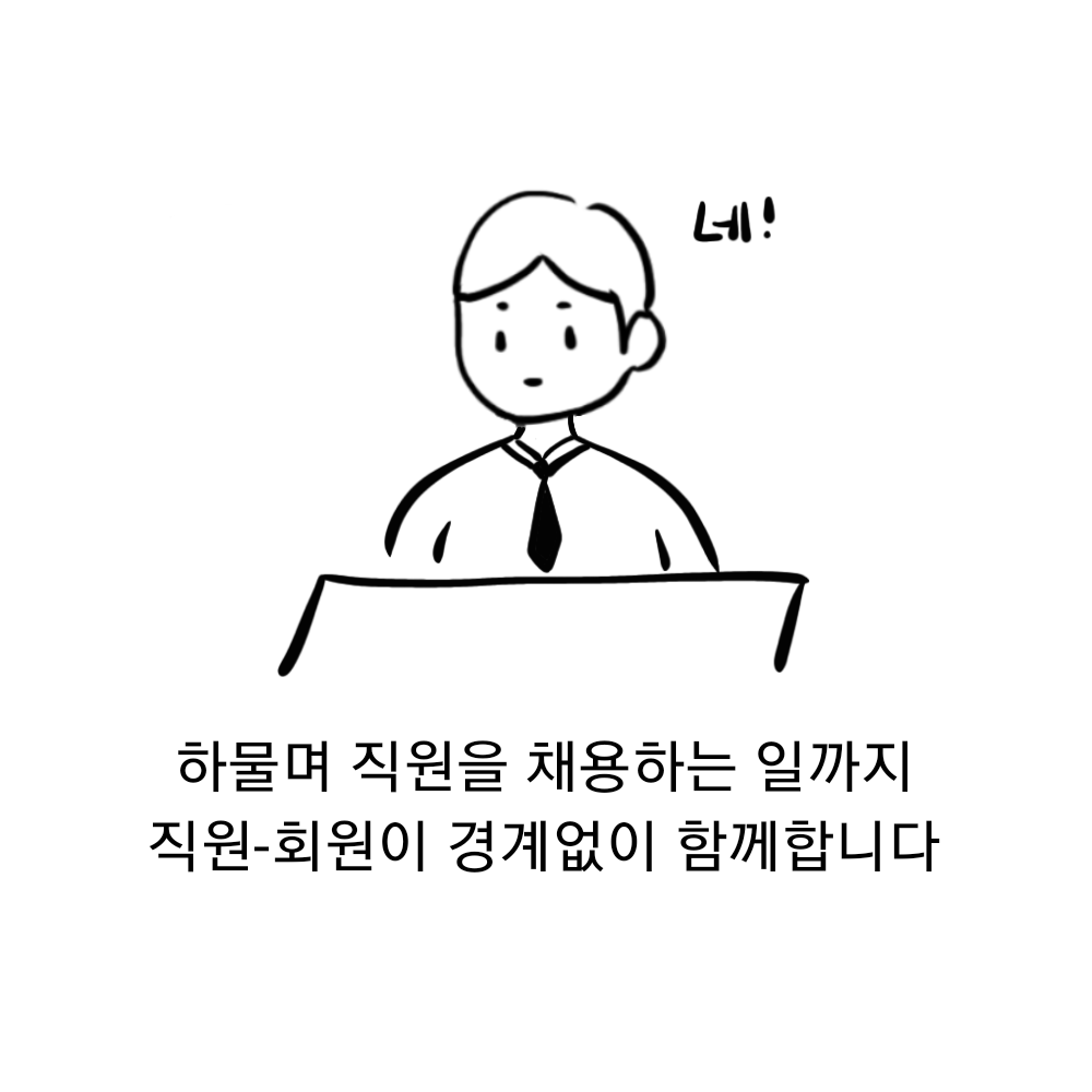 클럽하우스는 모두에게 개방되어 있습니다. 클럽하우스를 새로 찾는 이부터 이용하는 회원들에게까지 말이죠. 구체적으로는 프로그램을 결정하고 주요 안건을 다루는 과정, 하물며 직원을 채용하는 일까지 직원-회원이 경계없이 함께합니다.