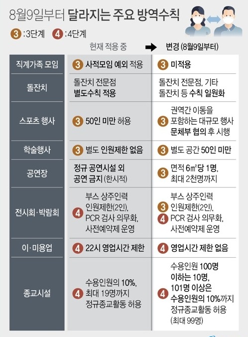 8월 9일부터 달라진 '사회적 거리두기 개편안' 내용입니다~!