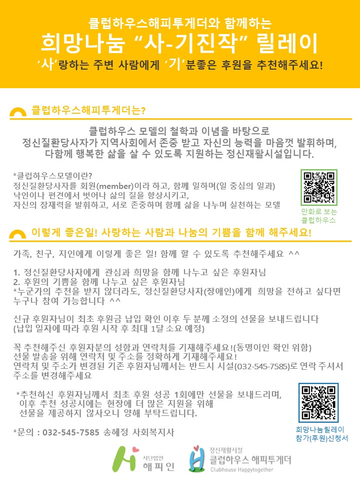 희망나눔릴레이에 함께하여 정신질환당사자(장애인)의 회복을 응원해주세요 ^^