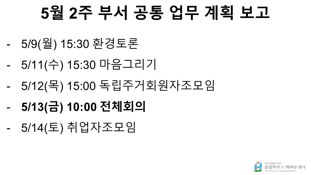 | 2022년 5월 13일 전체회의 자료(다음주 일정공지) (0) | 2022.05.13 |