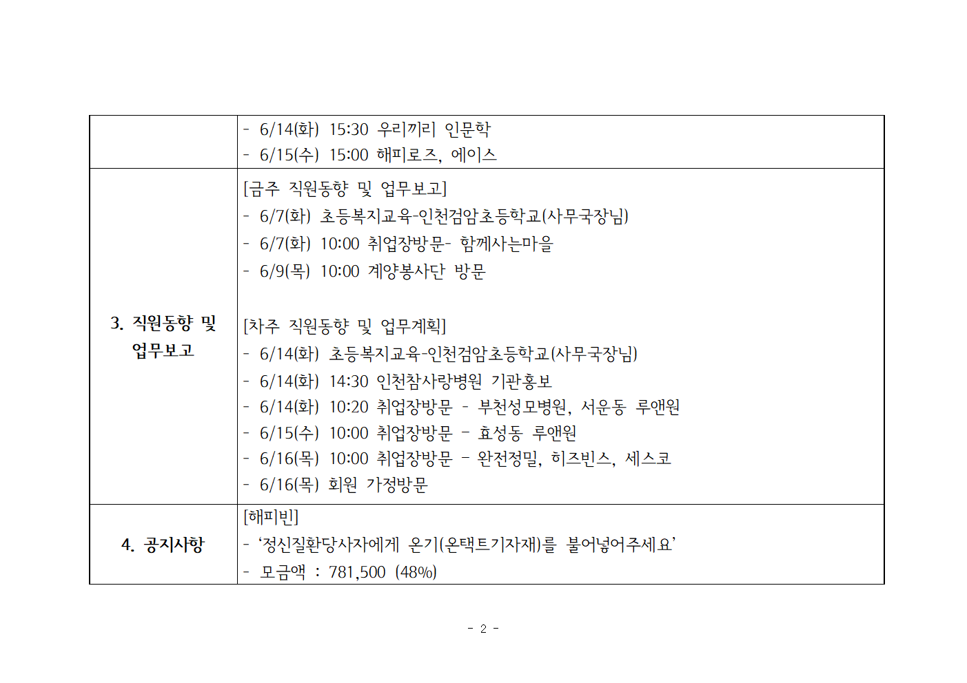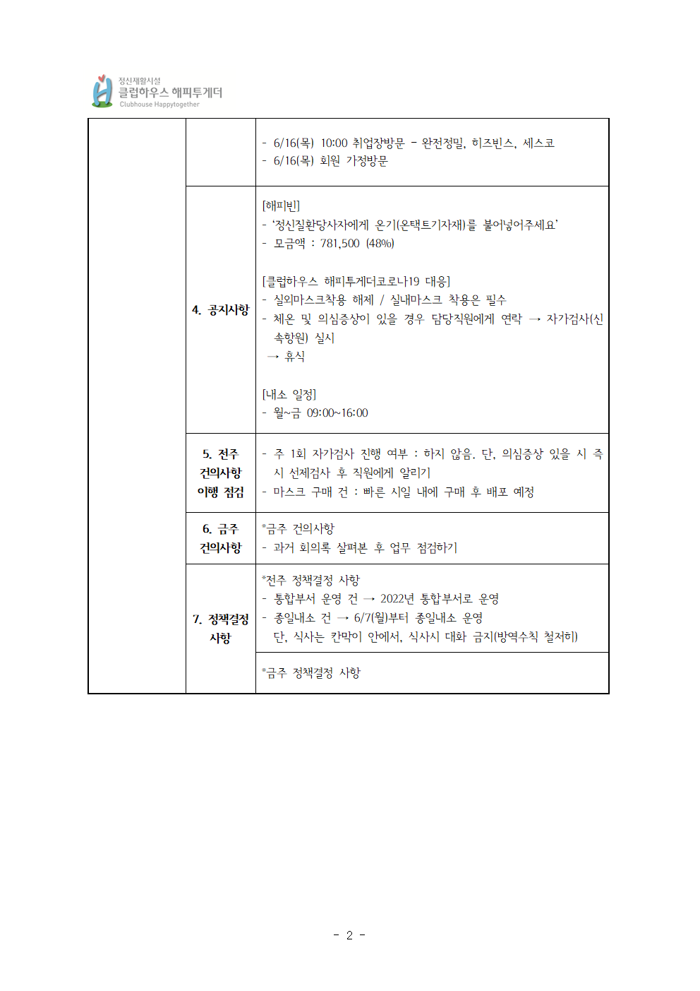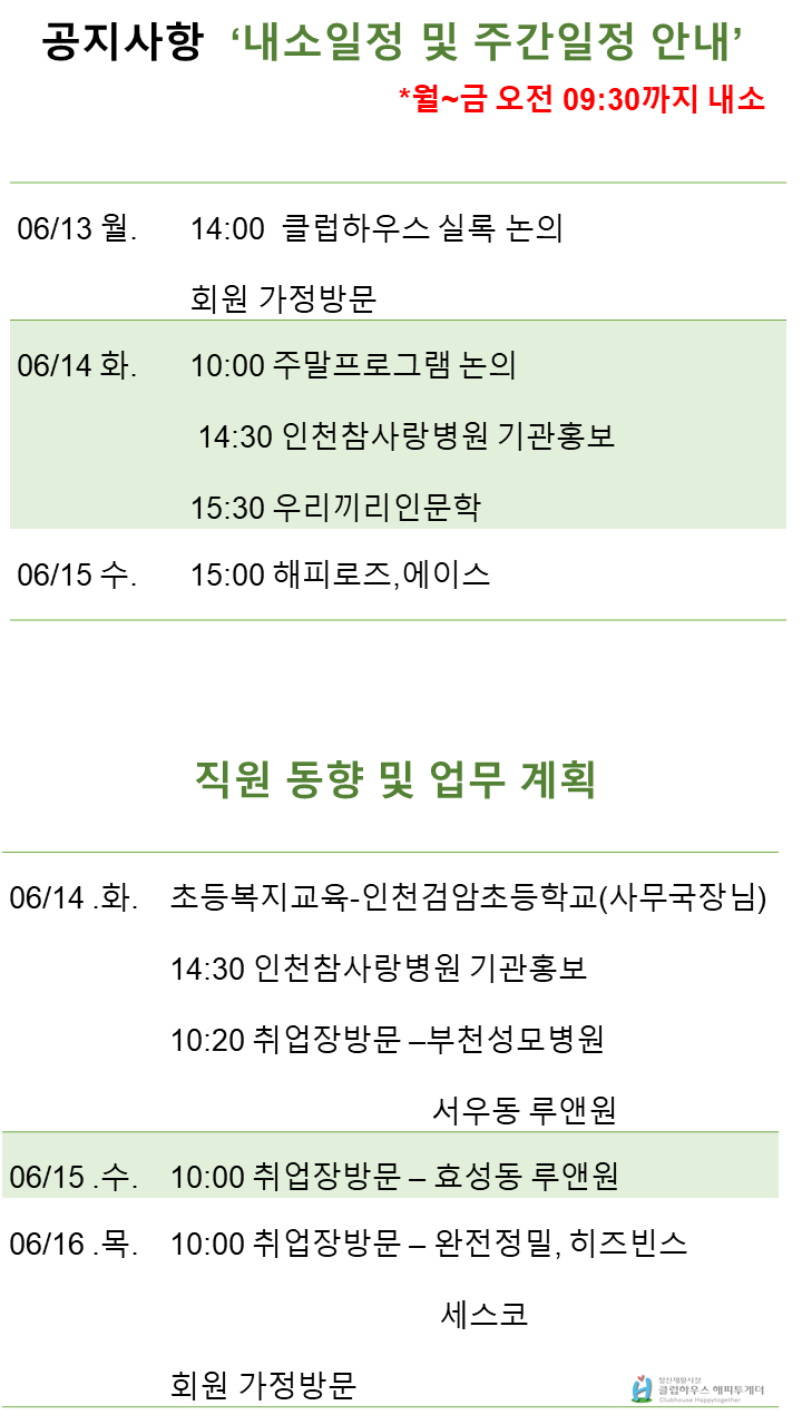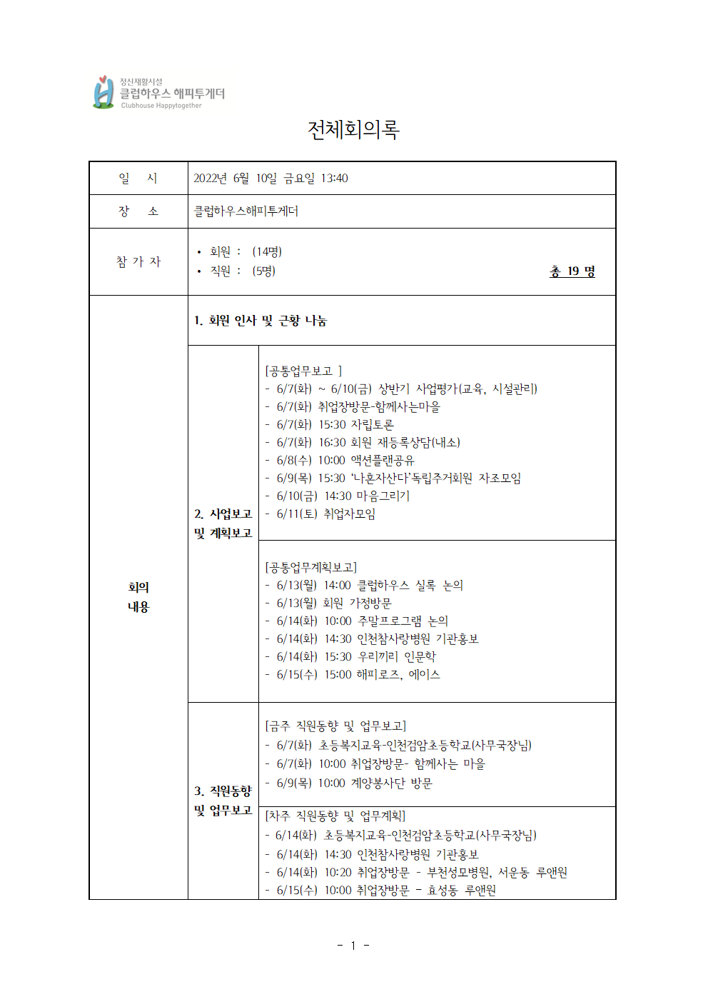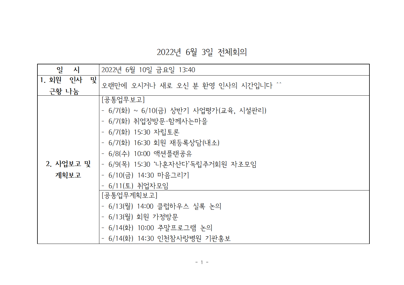 2022년 6월 10일 전체회의록 및 주간 일정표
