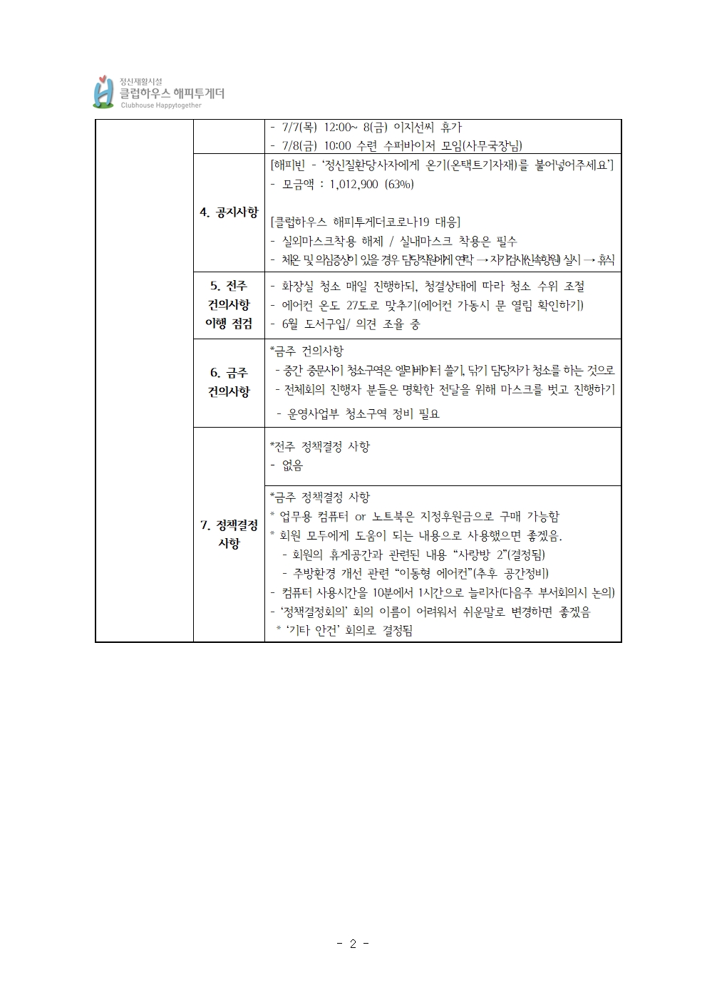 사)해피인, 클럽하우스 해피투게더