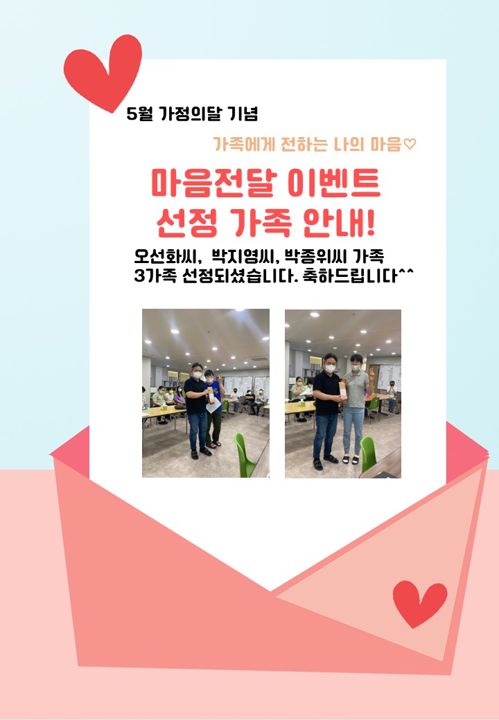 | 5월 가정의 달 기념 마음전달 이벤트! (11) | 2023.05.08 |