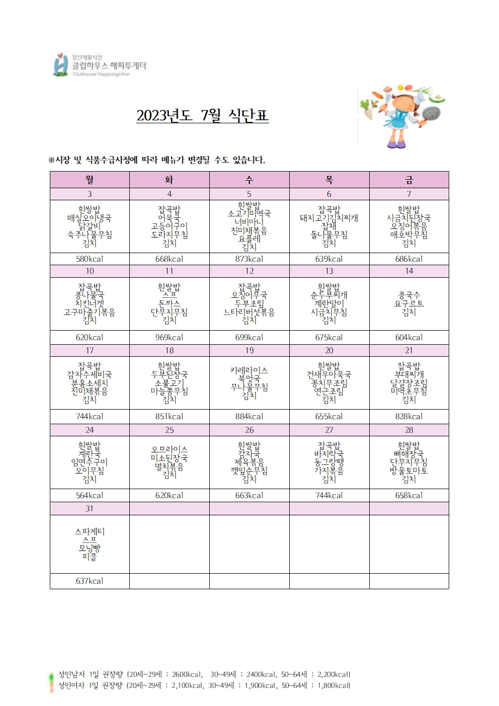 | 2023년 8월 식단표 (0) | 2023.07.31 |