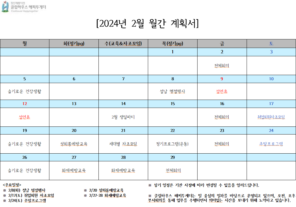 | 2024년 클럽하우스해피투게더 직원 채용(정신건강전문요원 or 재활활동요원) (0) | 2024.02.03 |