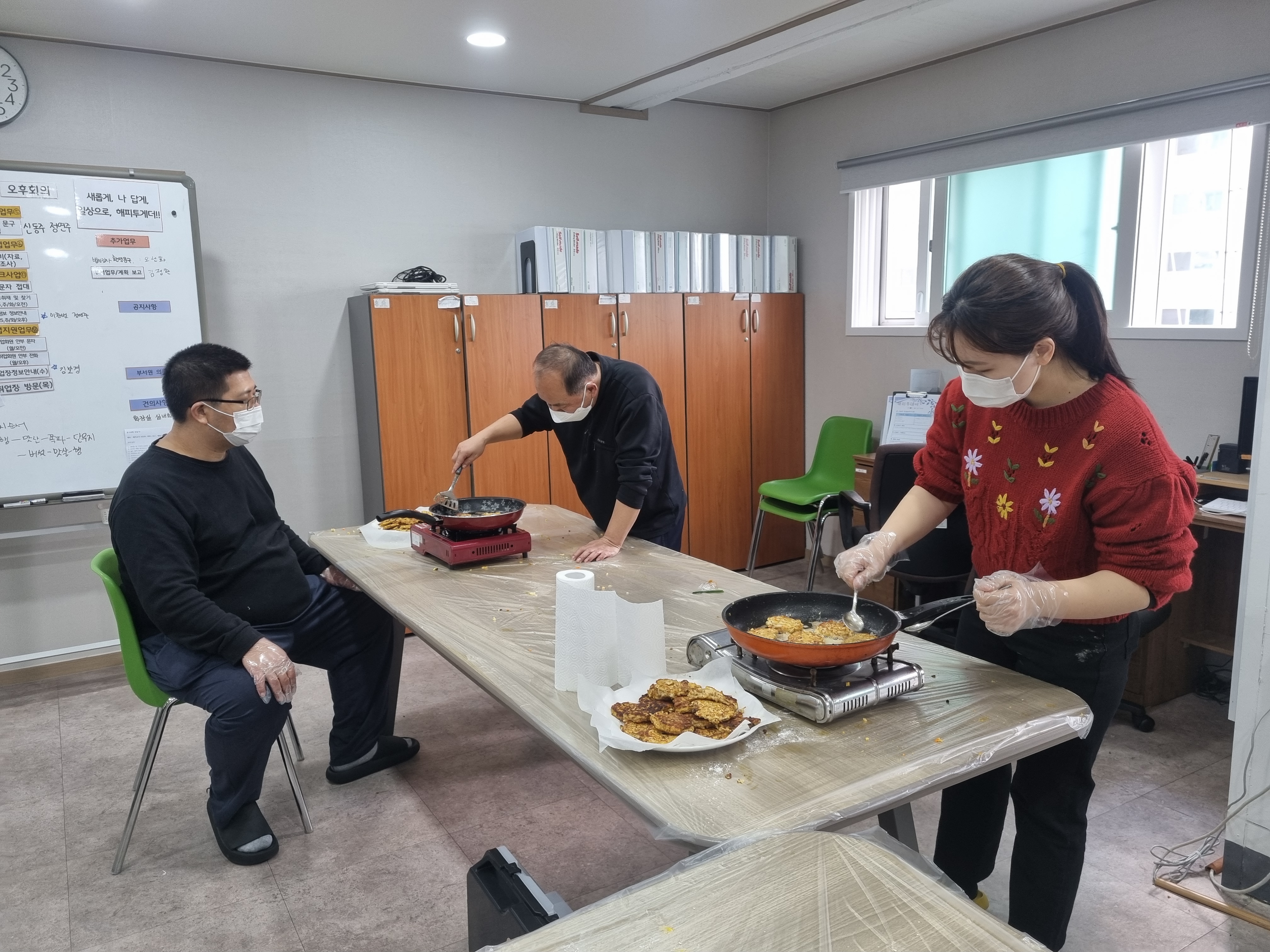 그렇게 완성된 음식은 점심식사로 떡국과 함께 회원님들과 나누게 되었습니다!