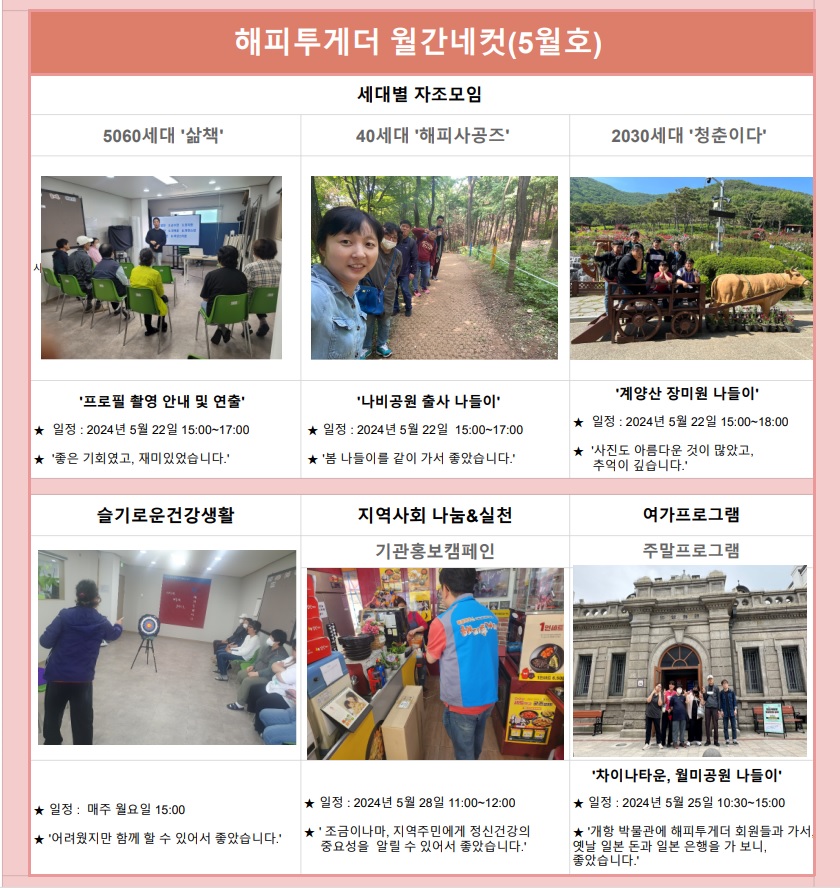 | 5060세대 모임 '삶책' 4월 동아리 활동 (0) | 2024.05.02 |