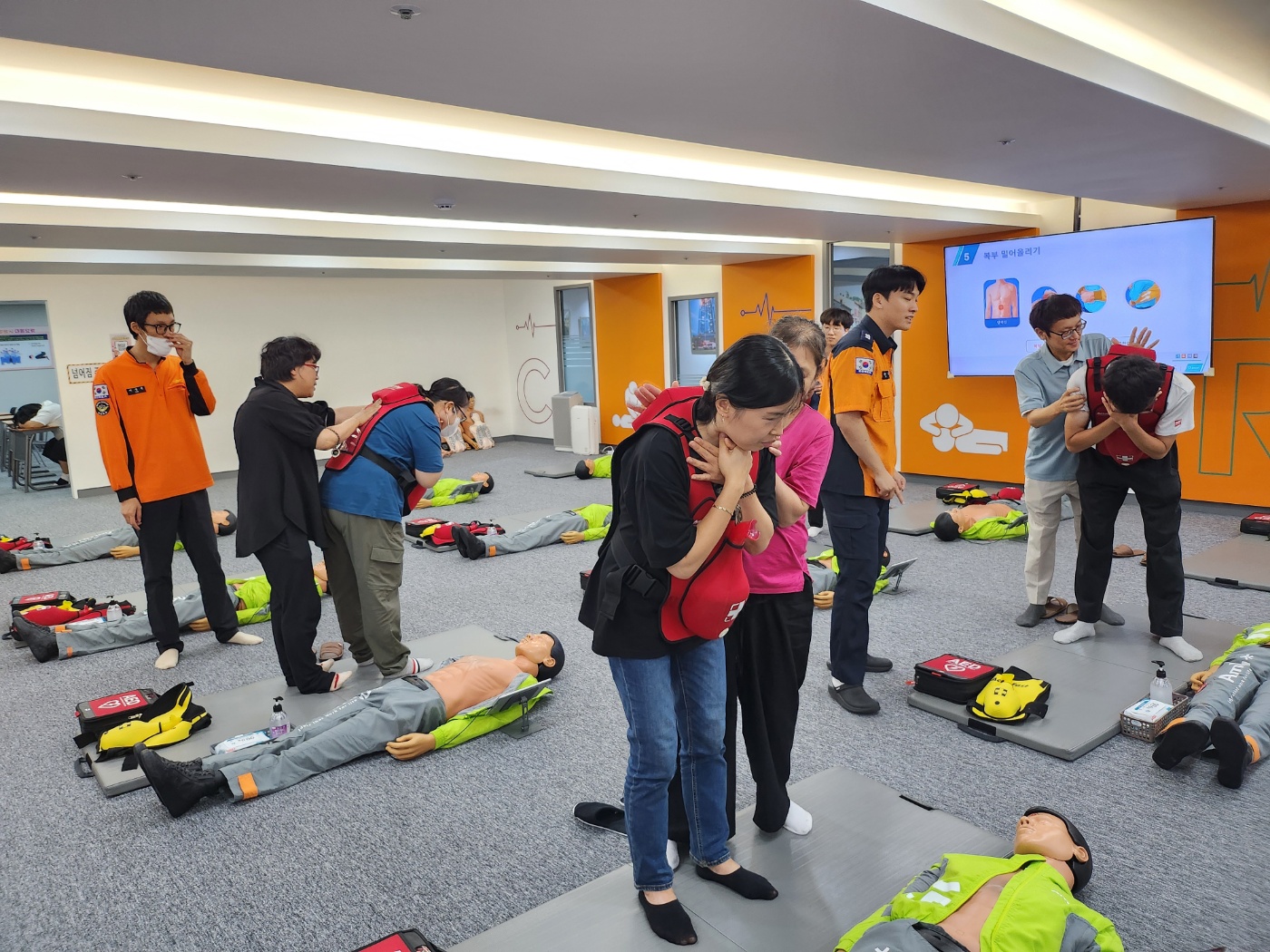 심폐소생술과 자동제세동기 사용법, 하임리히법 등에 대해서 배우는 시간을 가졌습니다.