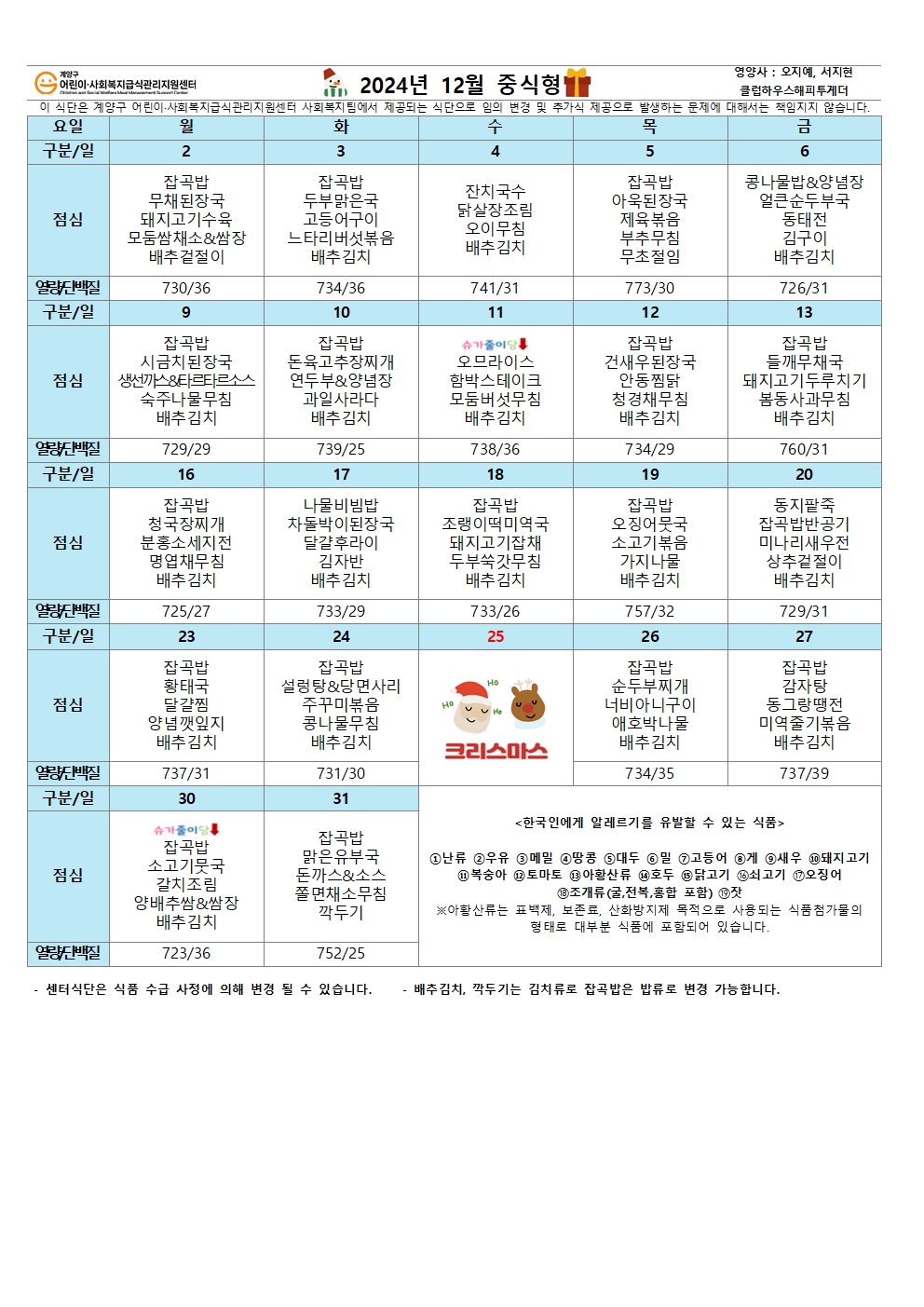 | 2025년 1월 식단표 (0) | 2024.12.27 |