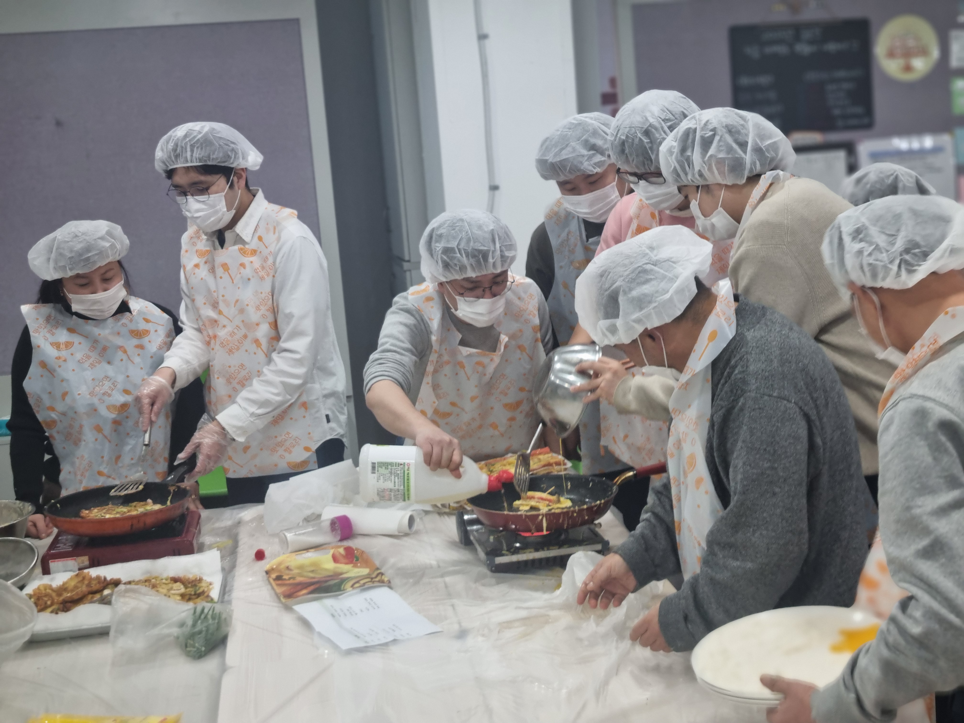그렇게 완성된 음식은 다 같이 나누어 먹으며 따뜻한 전만큼이나 따뜻한 정을 나누었습니다.