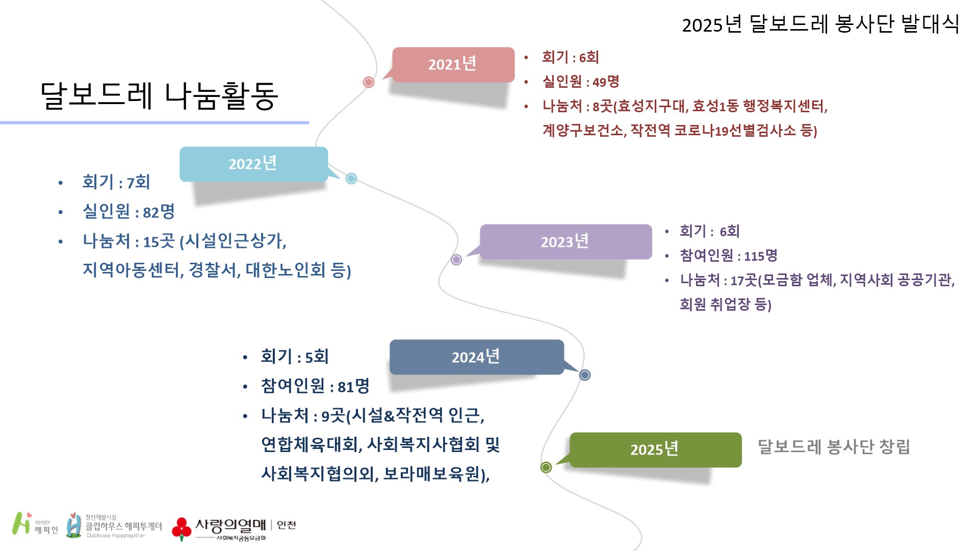 2020년 새희망병원&인천사회복지공동모금회 지정기탁사업 '달보드레'가 선정되면서 본격적으로 진행되었습니다