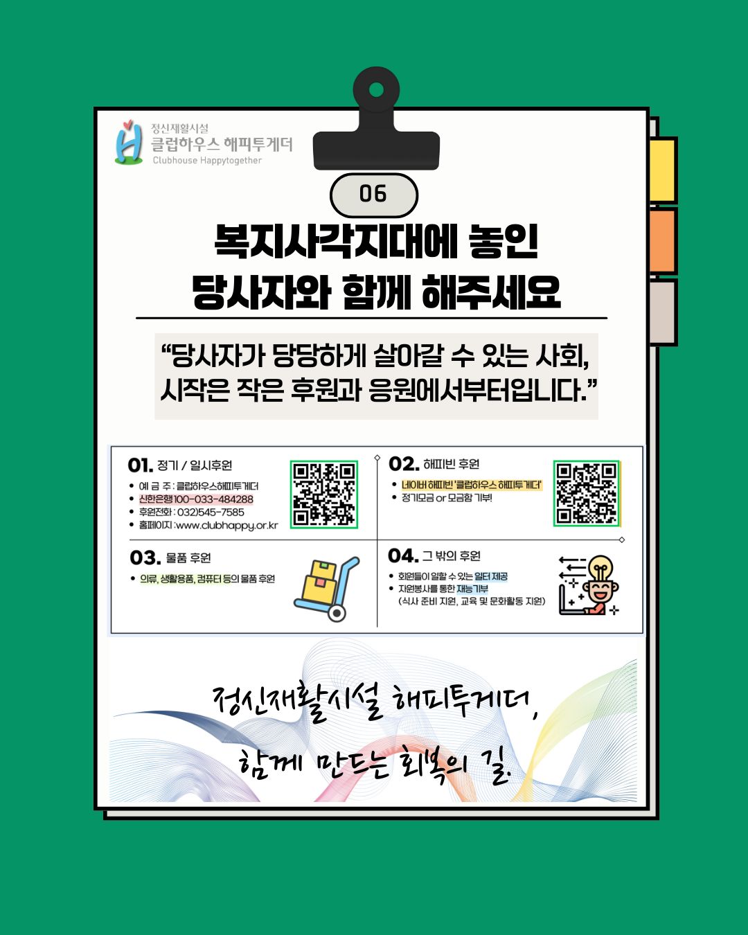 💙 정기/일시후원, 해피빈 모금, 물품후원, 재능기부 모두 가능합니다.