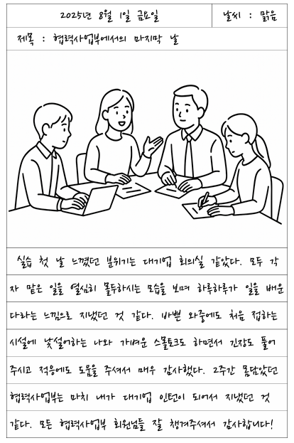 아래 글은 실습생이 직접 남긴 소감문으로, 실습 기간 동안 느낀 배움과 성장을 진솔하게 담고 있습니다.