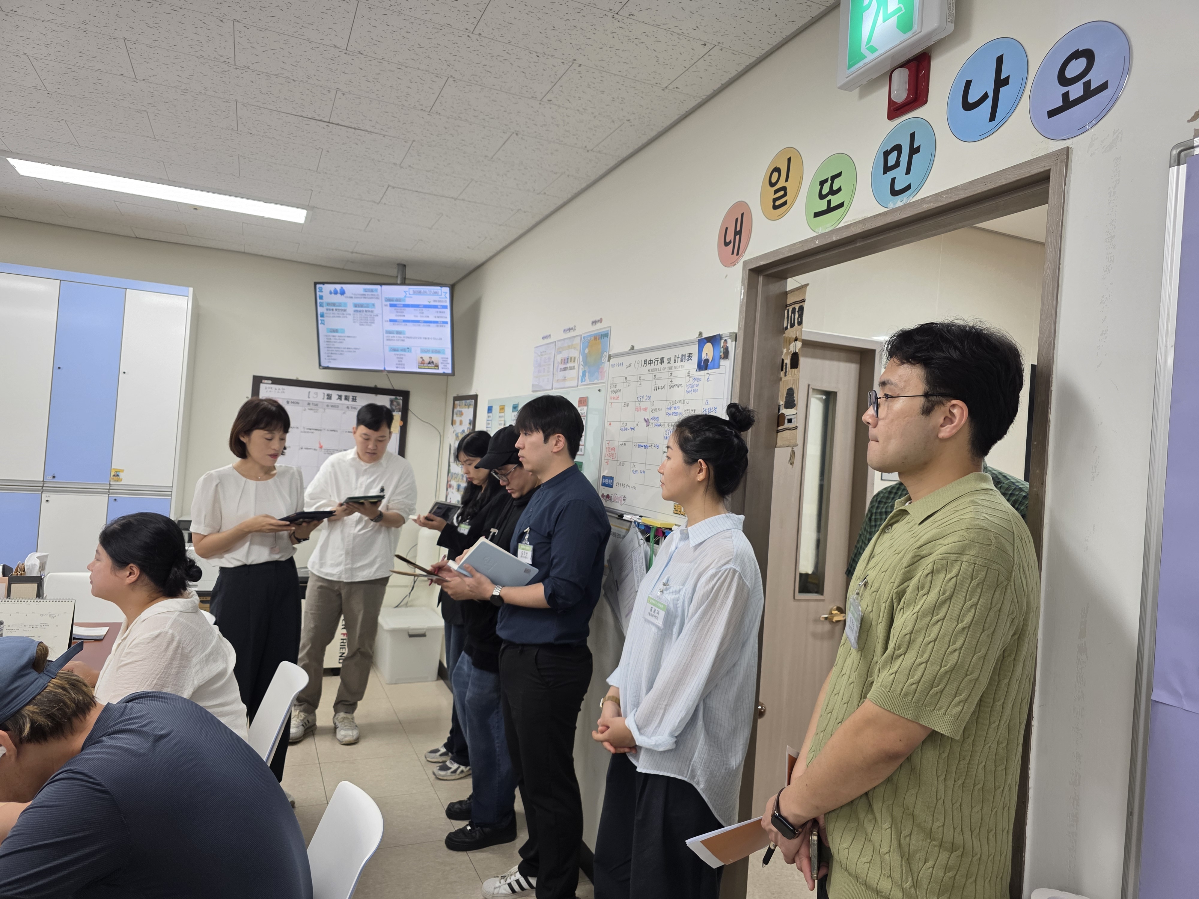 라운딩에서는 샘솟는집의 회원과 직원이 함께하며 각 부서별 업무와 프로그램을 안내해 주셨습니다. 실제 공간을 둘러보며