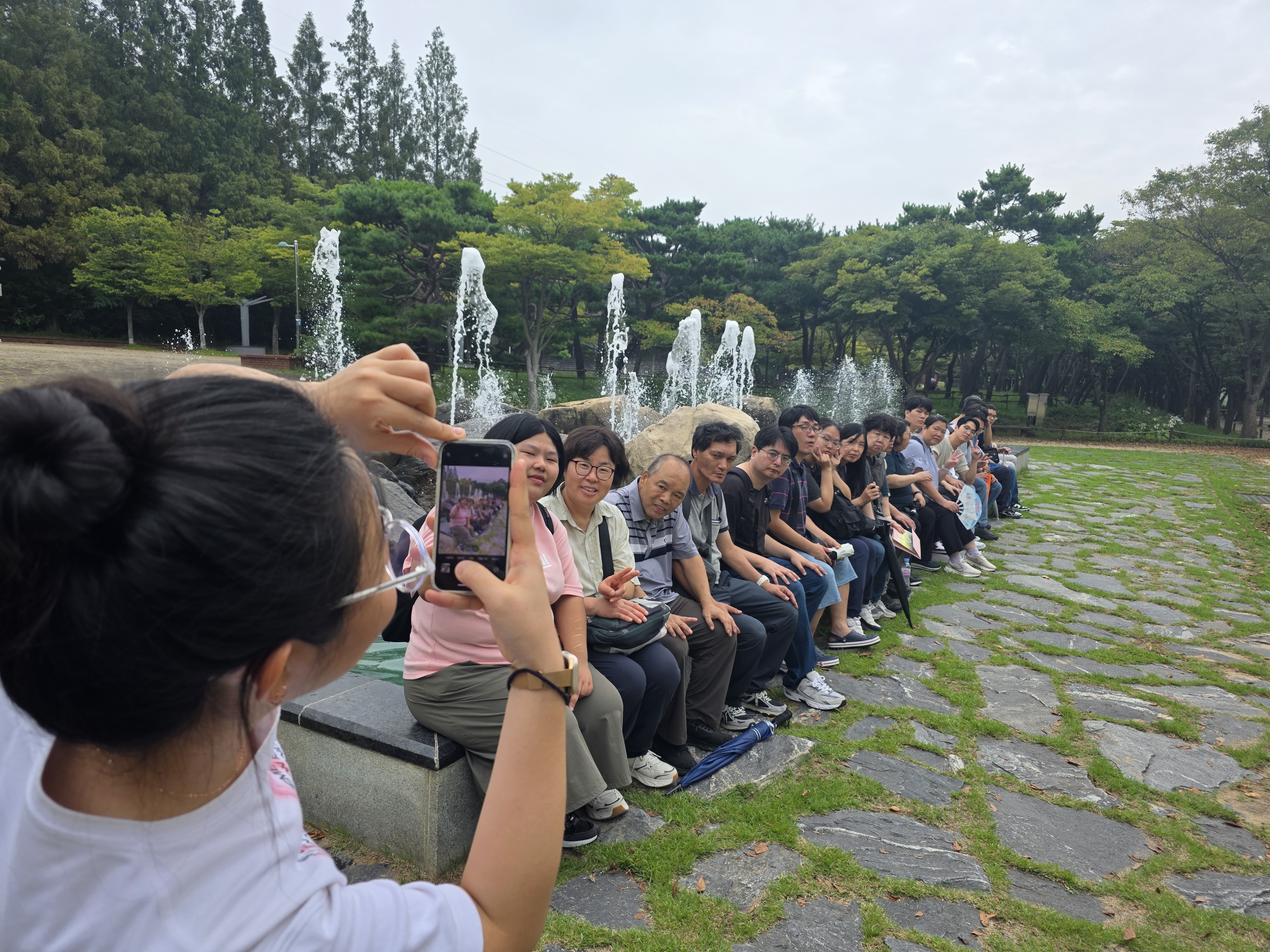 식사 후에는 공원 곳곳의 명소를 둘러보며 개성 넘치는 사진을 남겼습니다. "LOVE" 글자 조형물 앞에서 한껏 근엄(?)하게 서본 모습, 장미꽃이 활짝 핀 계단에서 포즈를 취한 모습, 그리고 초대형 반지 조형물 안에서 포즈를 잡은 장면까지, 모두의 유쾌한 에너지가 사진에 가득 담겼습니다.