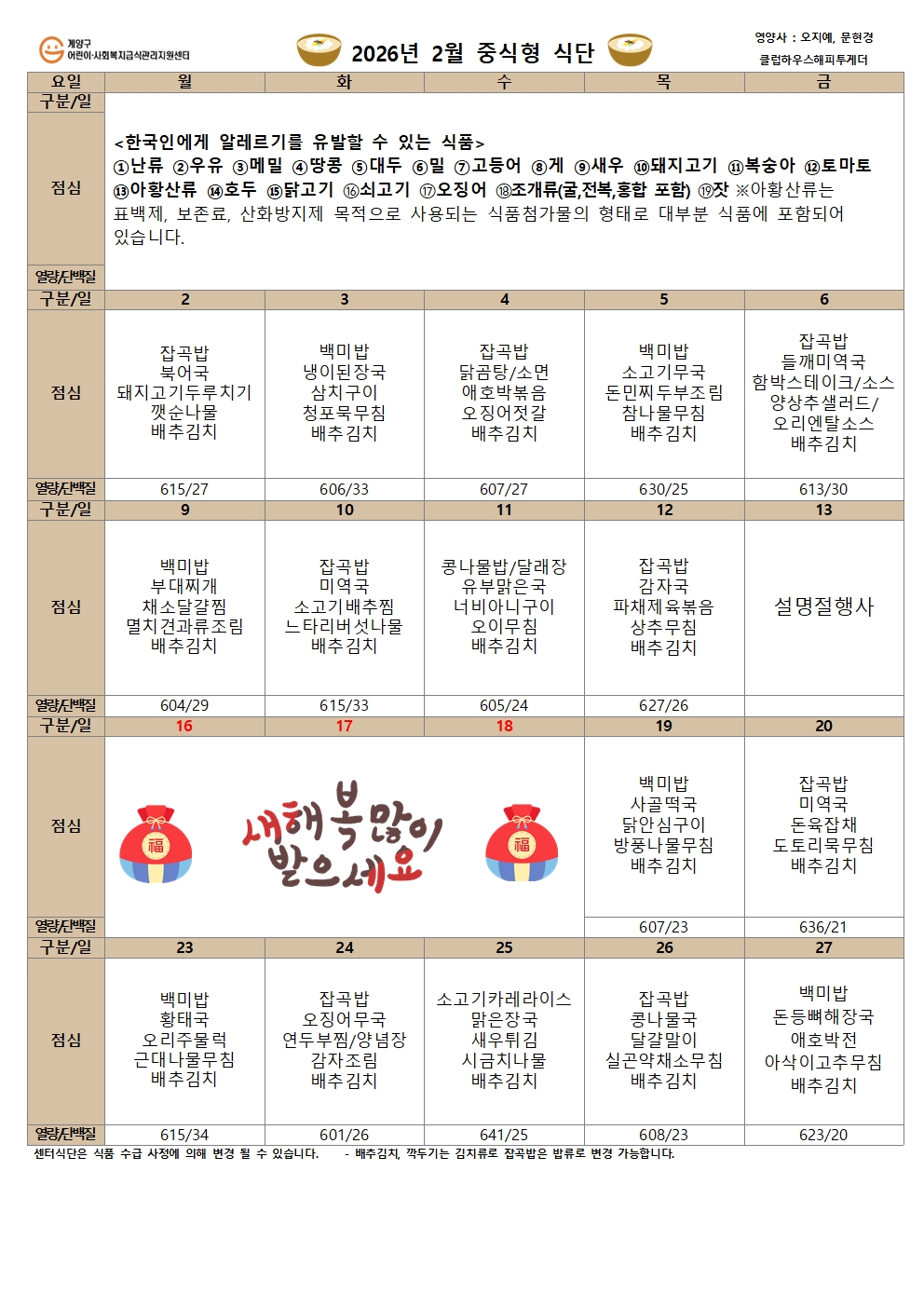 | 2026년 1월 식단표 (0) | 2025.12.29 |