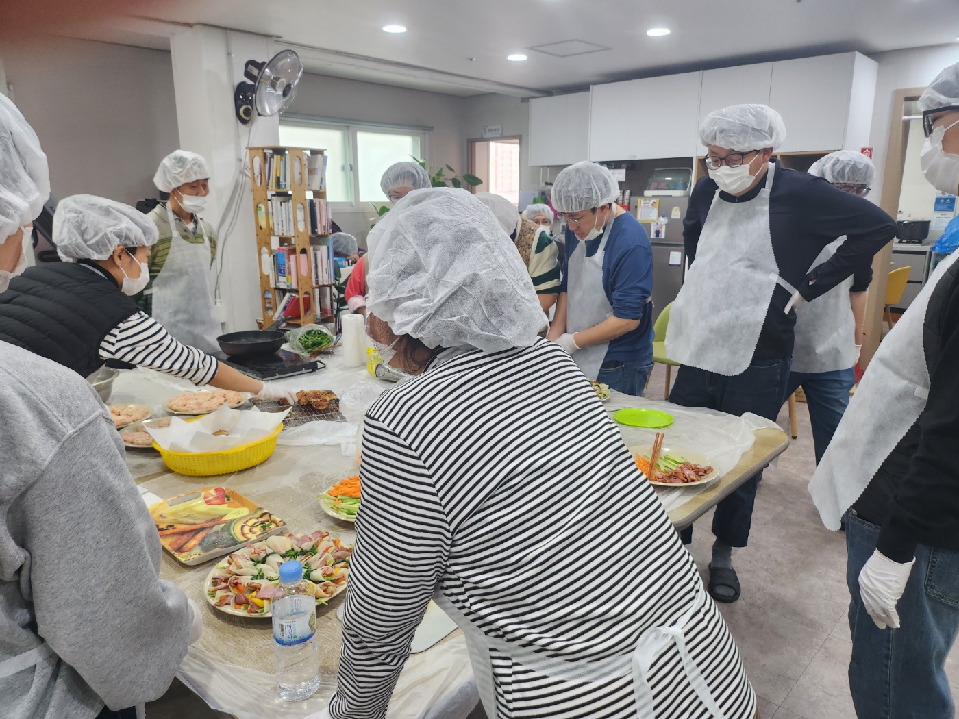 부서별로 명절 음식을 직접 만들며 협력과 즐거움을 느낄 수 있었습니다. 협력사업부에서는 고기말이쌈과 동그랑땡을 준비하고, 운영사업부에서는 과일샐러드와 부추전을 만들어 함께 나누며 명절의 정취를 더했습니다.