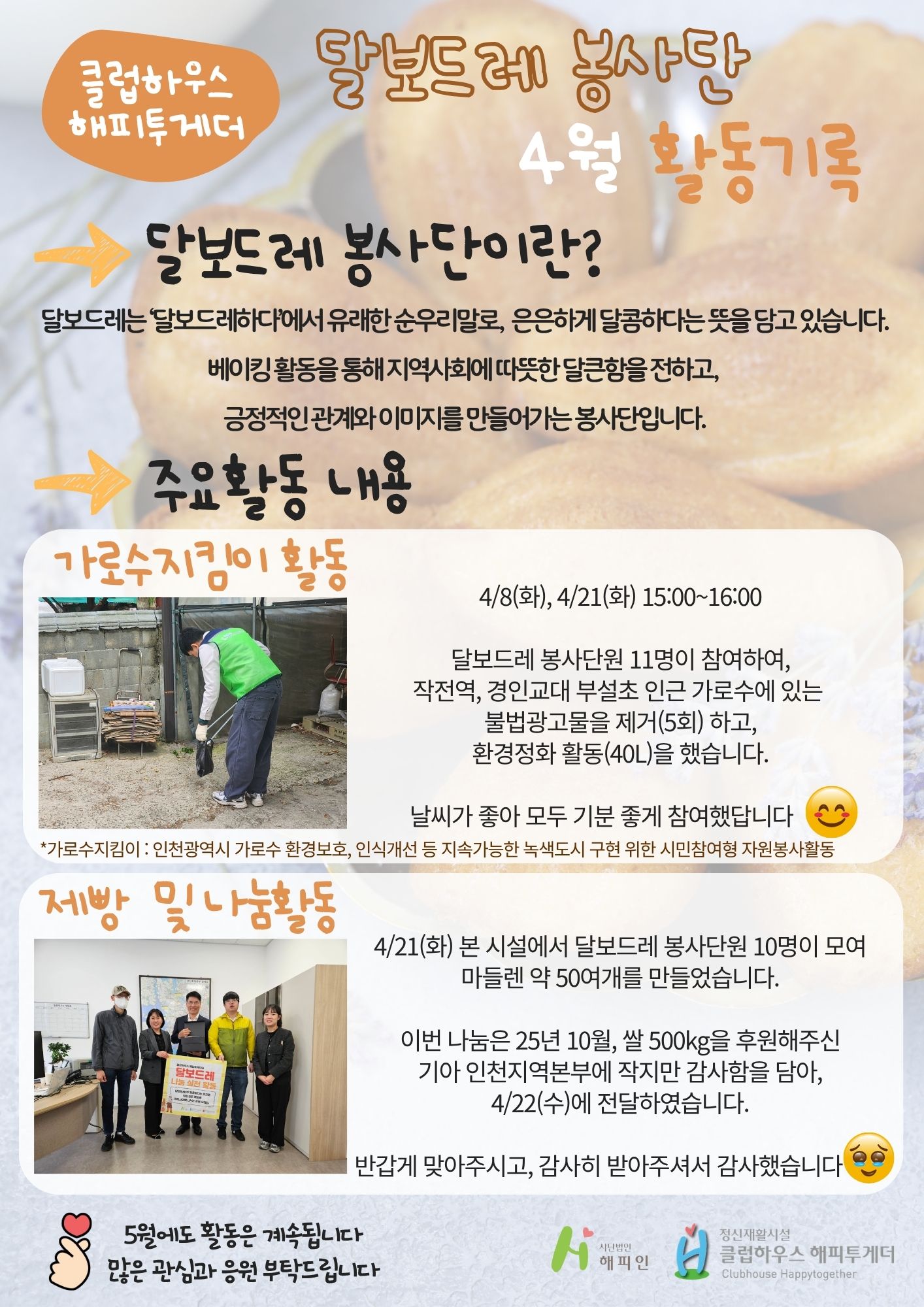 | 20250514 달보드레 봉사단 제빵 및 나눔활동 (0) | 2025.05.19 |
