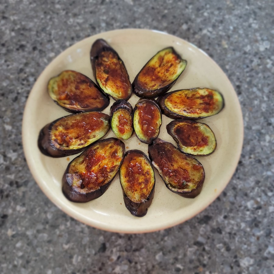 3. 구운 가지 위에 양념장을 얹어주어 마무리한다.