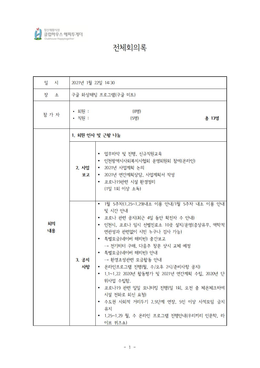 2021년 1월 22일 금요일 전체회의록 입니다.