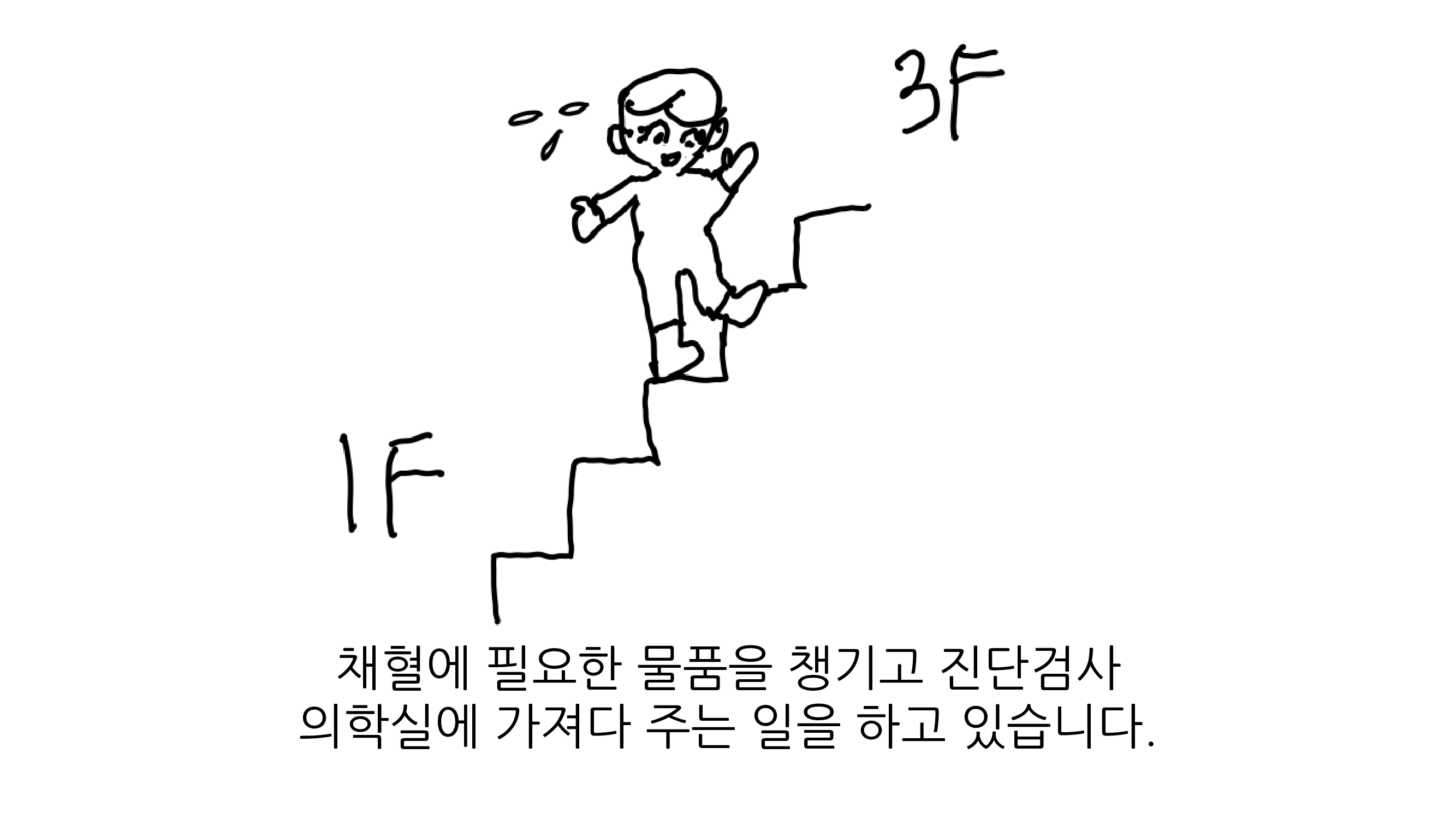 **병원 채혈실에서 근무하고 있는 O씨는 밝은 성격으로 활기차게 근무하고 있습니다.