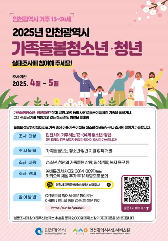2025년 인천광역시 가족돌봄청소년·청년 실태조사 참여 안내