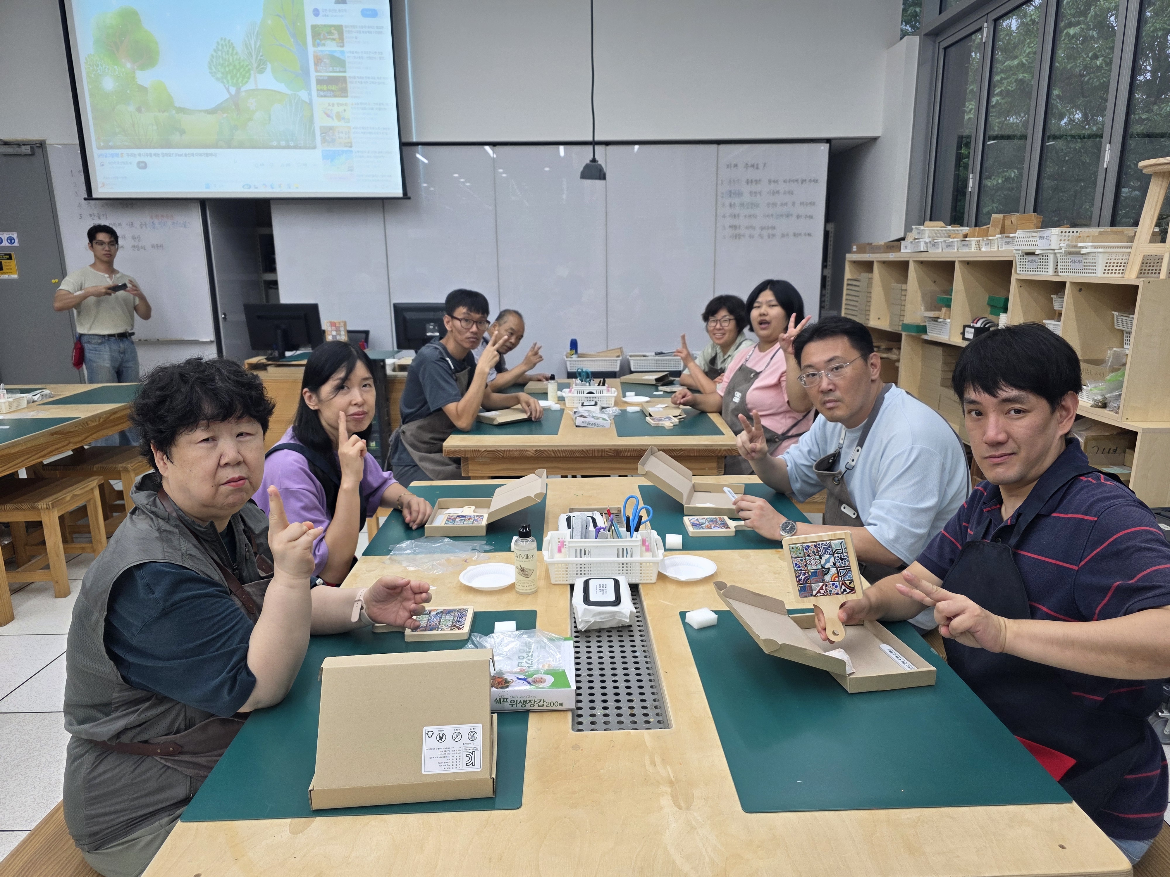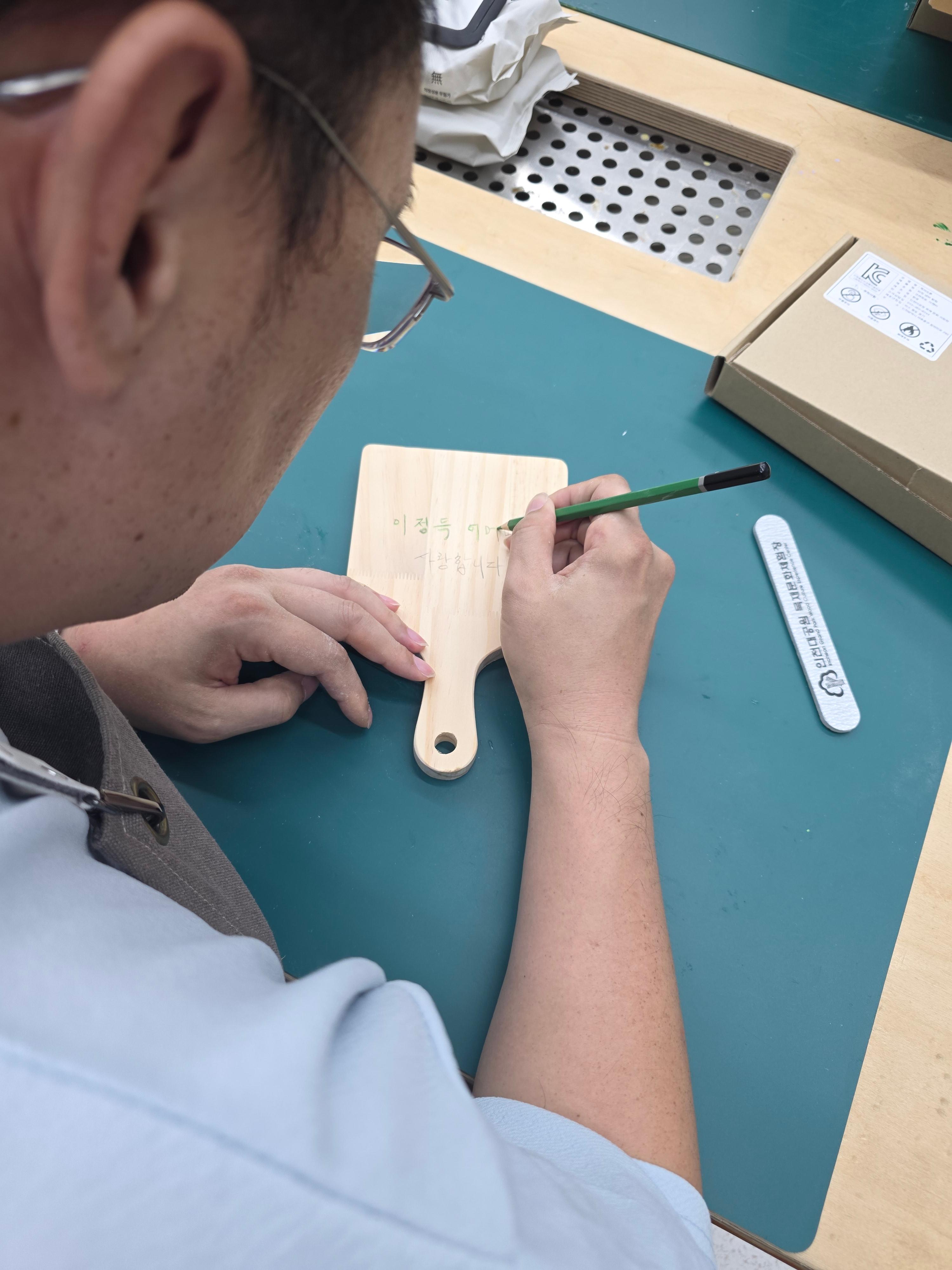 이번 활동의 하이라이트는 바로 목재공방 체험이었습니다. 각자 준비된 키트를 받아 나만의 작품을 만드는 시간이었죠. 집중해서 조각을 다듬고, 연필로 이름과 그림을 새기며 자신만의 개성을 담아냈습니다. 처음에는 조금 서툴렀지만 점점 손에 익어가는 과정에서 성취감이 커졌습니다.