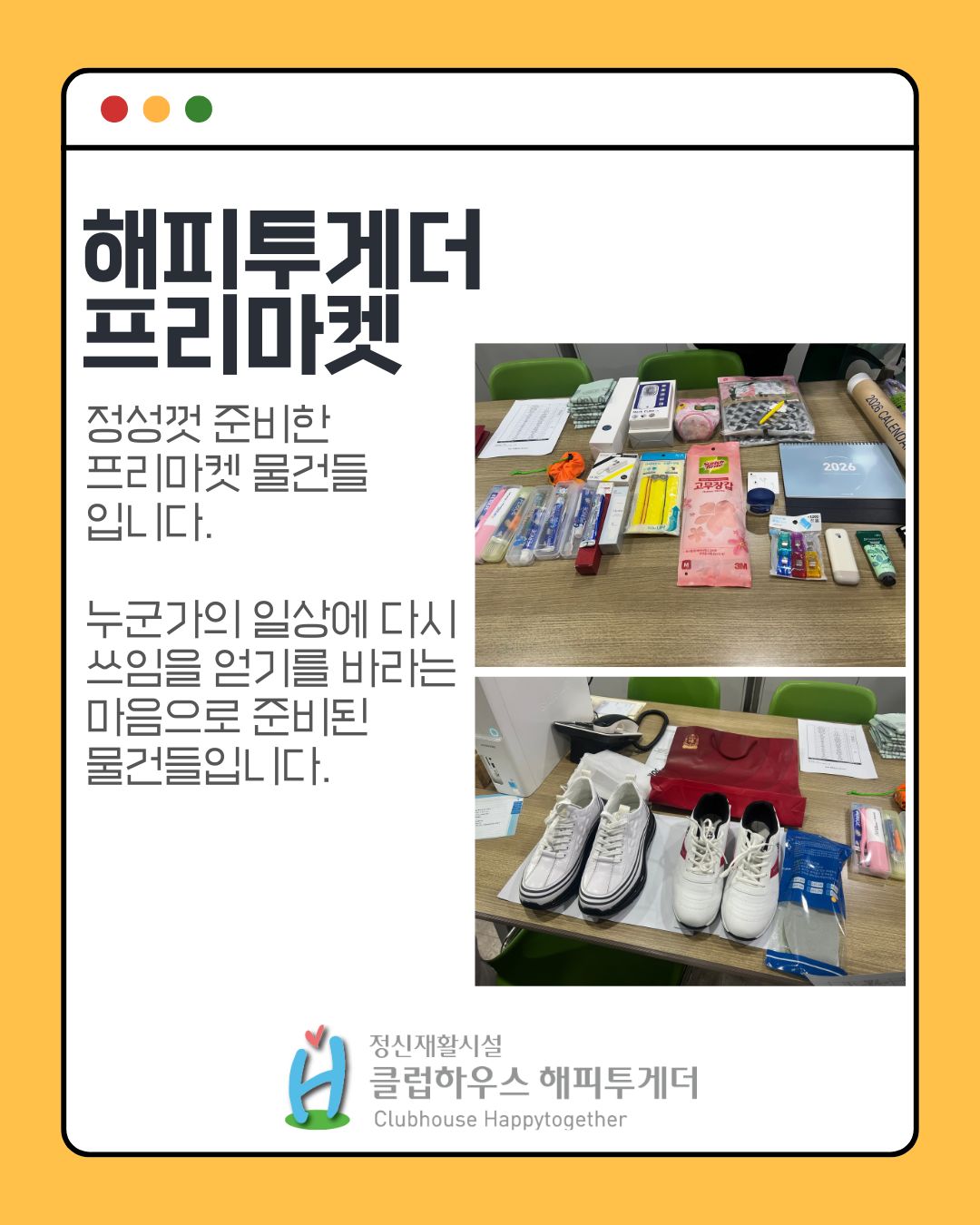 해피투게더에서는 일상 속 작은 나눔을 실천하는 프리마켓을 진행했습니다.